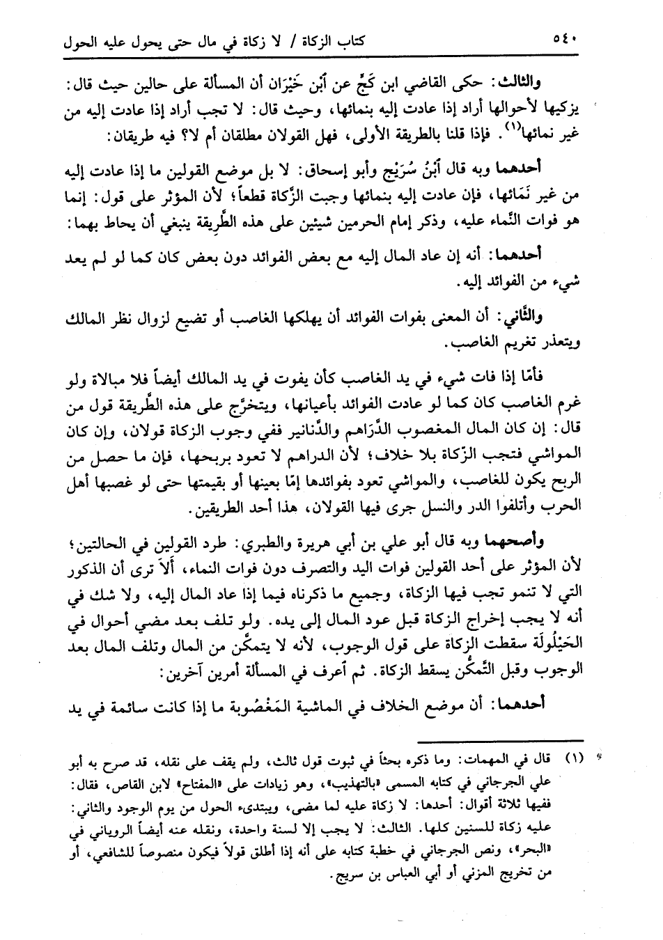 وأصحهما وبه قال أبو علي بن أبي هريرة والطبري: طرد القولِين في الحالتين؛ لأن المؤثر على أحد القولين ذوات اليد والتصرف دون فوات النماء، أَلاَ ترى أن الذكور التي لا تنمو تجب فيها الزكاة، وجميع ما ذكرناه فيما إذا عاد المال إليه، ولا شك في أنه لا يجب إخراج الزكاة قبل عود المال إلى يده. ولو تلف بعد مضي أحوال في الحَيْلُولَة سقطت الزكاة على قول الوجوب، لأنه لا يتمكَّن من المال وتلف المال بعد الوجوب وقبل التَّمكُّن يسقط الزكاة. ثم اعرف في المسألة أمرين آخرين: