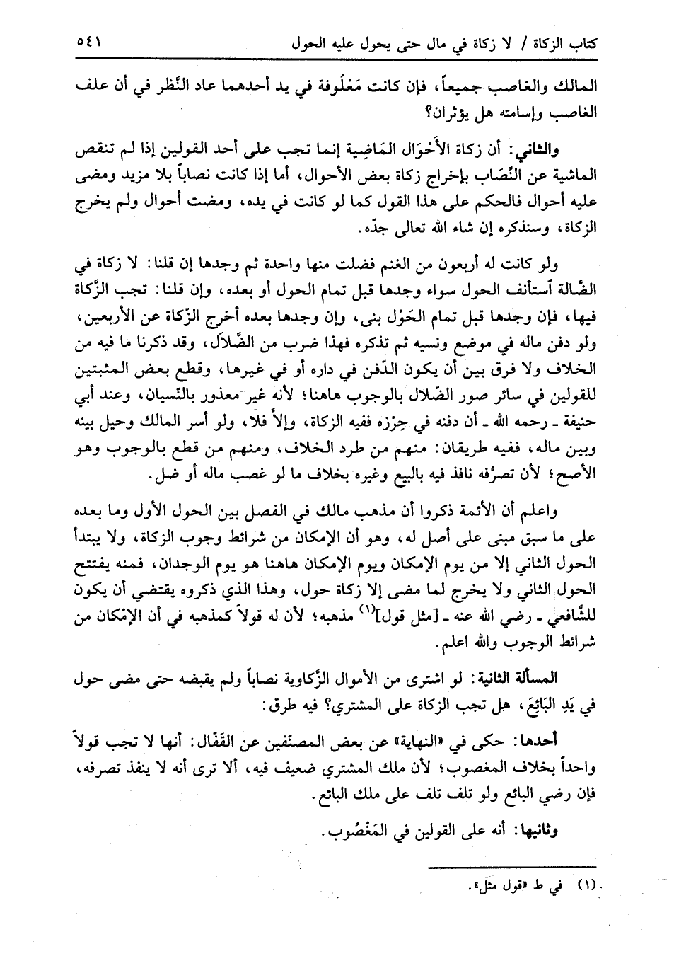 والثاني: أن زكاة الأَحْوَال المَاضِية إنما تجب على أحد القولين إذا لم تنقص الماشية عن النِّصَاب بإخراج زكاة بعض الأحوال، أما إذا كانت نصاباً بلا مزيد ومضى عليه أحوال فالحكم على هذا القول كما لو كانت في يده، ومضت أحوال ولم يخرج الزكاة، وسنذكره إن شاء الله تعالى جده.