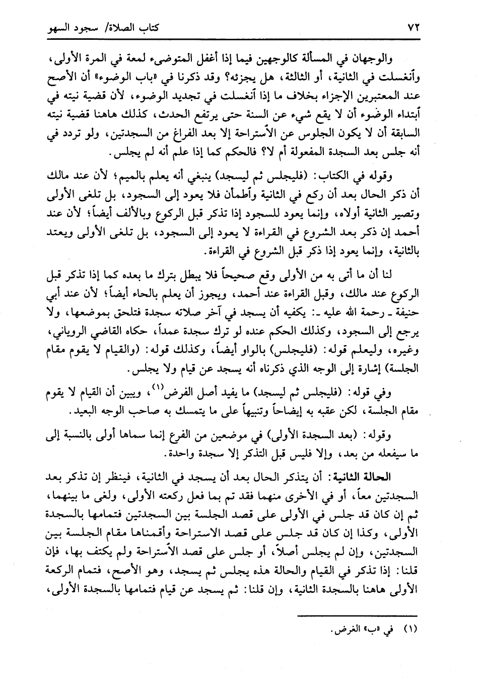 وقوله في الكتاب: (فليجلس ثم ليسجد) ينبغي أنه يعلم بالميم؛ لأن عند مالك أن ذكر الحال بعد أن ركع في الثانية واطمأن فلا يعود إلى السجود، بل تلغى الأولى وتصير الثانية أولاه، وإنما يعود للسجود إذا تذكر قبل الركوع وبالألف أيضاً؛ لأن عند أحمد إن ذكر بعد الشروع في القراءة لا يعود إلى السجود، بل تلغى الأولى ويعتد بالثانية، وإنما يعود إذا ذكر قبل الشروع في القراءة.