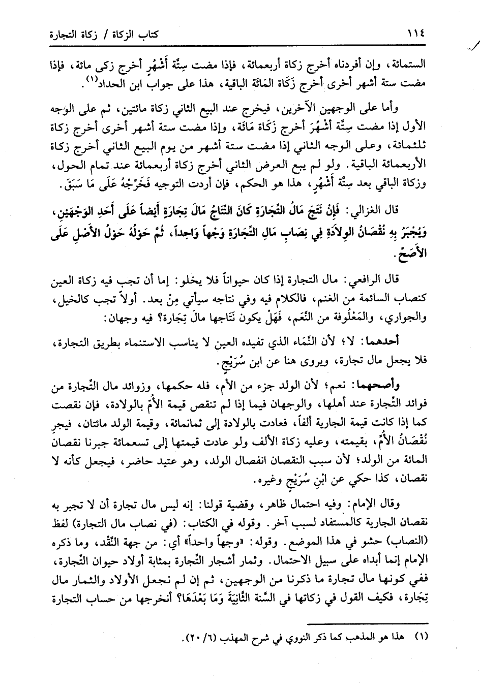 قال الغزالي: فَإِنْ نَتَجَ مَالُ التِّجَارَةِ كَانَ النِّتَاجُ مَالَ تِجَارَةٍ أَيْضًا عَلَى أَحَدِ الوَجْهَيْنِ، وَيُجْبَرُ بِهِ نُقْصَانُ الوِلاَدَةِ فِي نِصَابِ مَالِ التِّجَارَةِ وَجْهاً وَاحِداً، ثُمَّ حَوْلُهُ حَوْلُ الأَصْلِ عَلَى الأَصَحِّ.