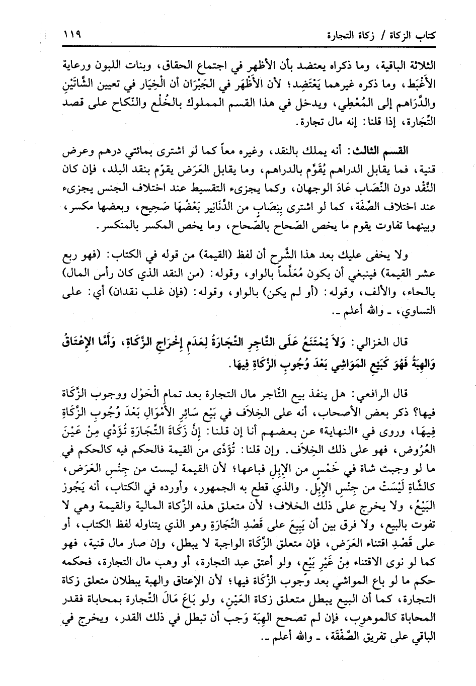 ولا يخفى عليك بعد هذا الشَّرح أن لفظ (القيمة) من قوله في الكتاب: (فهو ربع عشر القيمة) فينبغي أن يكون مُعَلَّماً بالواو، وقوله: (من النقد الذي كان رأس المال) بالحاء، والألف، وقوله: (أو لم يكن) بالواو، وقوله: (فإن غلب نقدان) أي: على التساوي، -والله أعلم-.