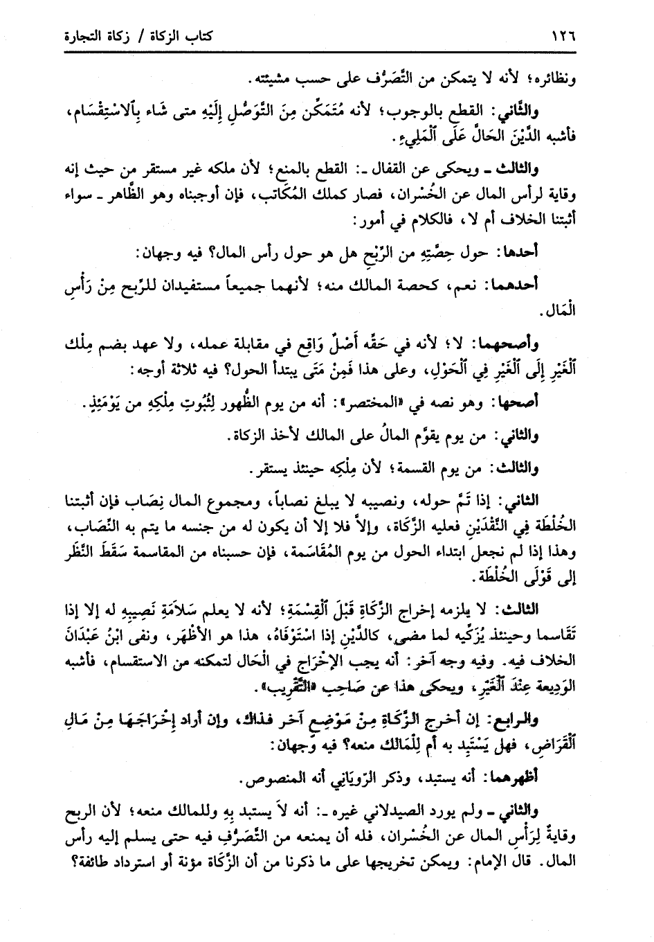 والثالث -ويحكى عن القفال-: القطع بالمنع؛ لأن ملكه غير مستقر من حيث إنه وقاية لرأس المال عن الخُسْران، فصار كملك المُكَاتب، فإن أوجبناه وهو الظَّاهر - سواء أثبتنا الخلاف أم لا، فالكلام في أمور: