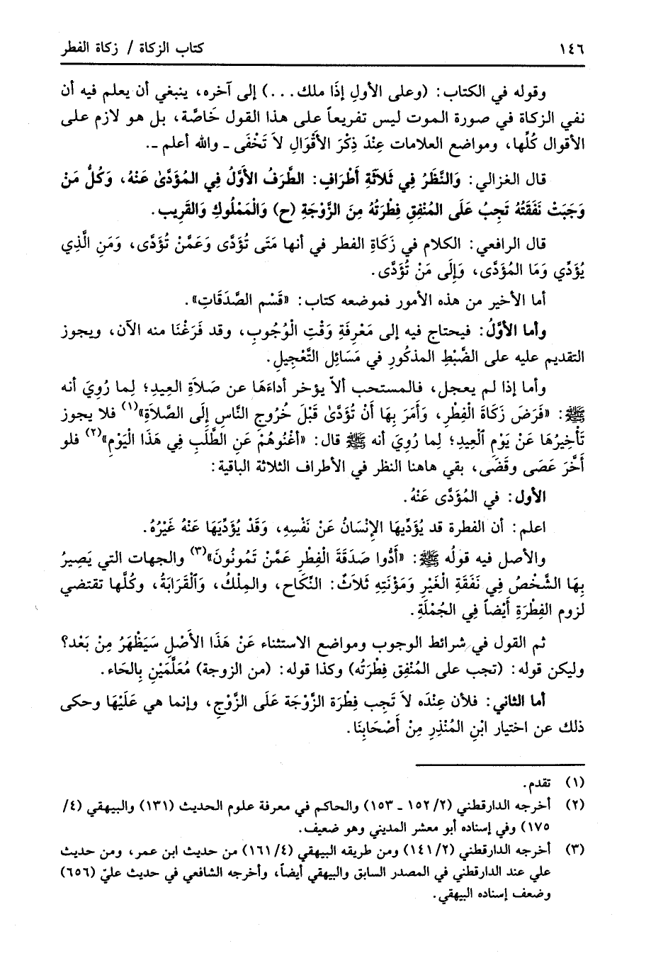ثم القول في شرائط الوجوب ومواضع الاستثناء عَنْ هَذَا الأَصْلِ سَيَظْهَرُ مِنْ بَعْد؟ وليكن قوله: (تجب على المُنْفِق فِطْرَتُه) وكذا قوله: (من الزوجة) مُعَلَّمَيْنِ بِالحَاء.