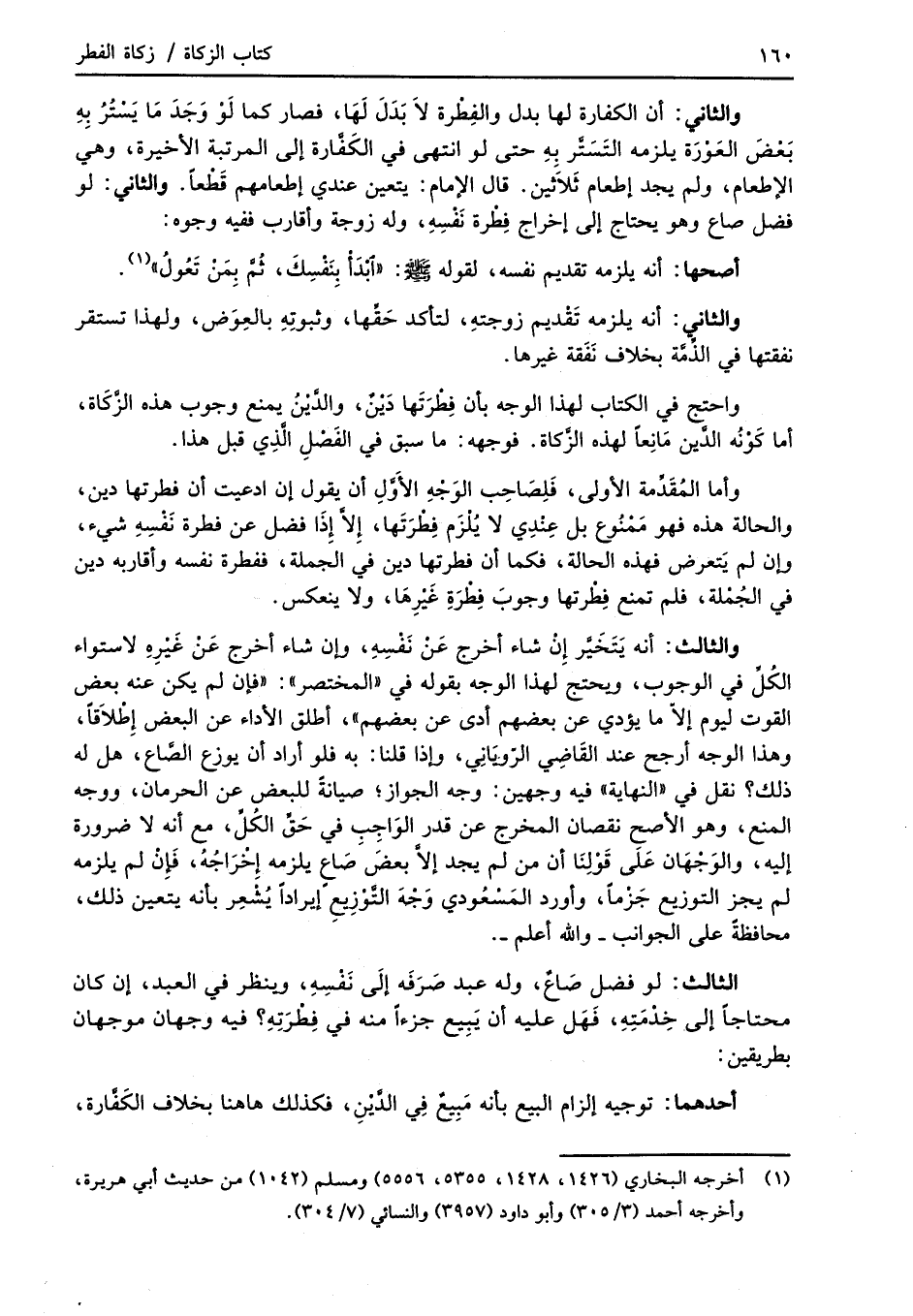 واحتج في الكتاب لهذا الوجه بأن فِطْرَتَها دَيْنٌ، والدَّيْنُ يمنع وجوب هذه الزَّكَاة، أما كَوْنُه الدَّين مَانِعاً لهذه الزَّكاة. فوجهه: ما سبق في الفَصْلِ الَّذِي قبل هذا.