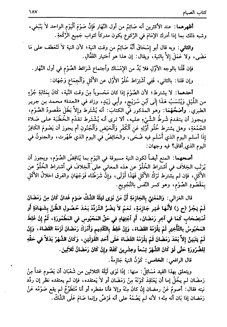 قال الرافعي: الخامس: كَوْنُ النية جَازِمةً.