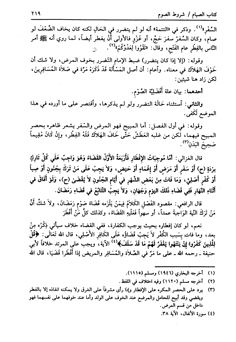(¬3) يرد على الحصر المكره على الإفطار وإذا رأى مشرفاً على الغرق ولا يمكنه انقاذه إلا بالفطر ويقضي وقد أبيح للحامل والمرضع عند الخوف على الولد وأما عند خوفهما على نفسهما فهو داخل من قسم المرض.
