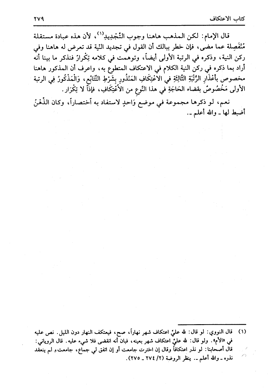 (¬1) قال النووي: لو قال: لله عليَّ اعتكاف شهر نهاراً، صح، فيعتكف النهار دون الليل. نص عليه في "الأم". ولو قال: لله عليَّ اعتكاف شهر بعينه، فبان أنه انقضى فلا شيء عليه. قال الروياني: قال أصحابنا: لو نذر اعتكافاً وقال إن اخترت جامعت أو إن اتفق لي جماع، جامعت، لم ينعقد نذره -والله أعلم-. ينظر الروضة (2/ 274 - 275).