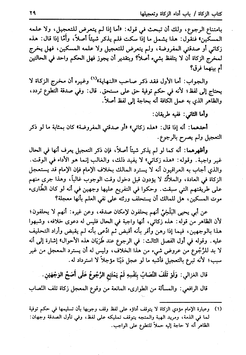 قال الرافعي: والمسألة من الطوارئ المانعة من وقوع المعجل زكاة تلف النّصاب