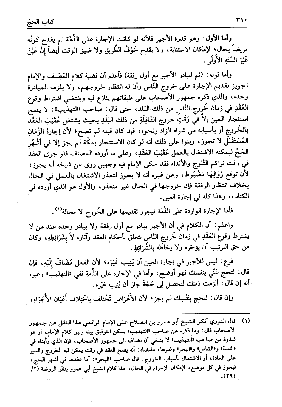 (¬1) قال النووي أنكر الشيخ أبو عمرو بن الصلاح على الإمام الرافعي هذا النقل عن جمهور الأصحاب قال: وما ذكره عن صاحب "التهذيب" يمكن التوفيق بينه وبين كلام الإمام، أو هو شذوذ من صاحب "التهذيب" لا ينبغي أن يضاف إلى جمهور الأصحاب، فإن الذي رأيناه في "التتمة" و"الشامل" و"البحر" وغيرها، مقتضاه: أنه يصح العقد في وقت يمكن فيه الخروج والسير على العادة، أو الاشتغال بأسباب الخروج. قال صاحب "البحر": أما عقدها في أشهر الحج، فيجوز في كل موضع، لإمكان الإحرام في الحال، هذا كلام الشيخ أبي عمرو ينظر الروضة (2/ 294).