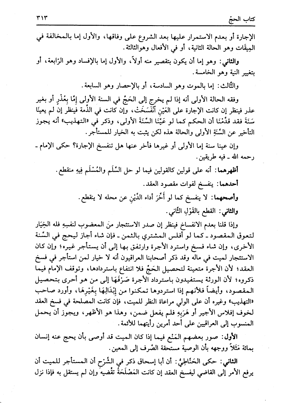 وإذا قلنا بعدم الانفساخ فينظر إن صدر الاستئجار من المعضوب لنفسِهِ فله الخِيَار لتعوق المقصود -كما لو أفلس المشتري بالثمن- فإن شاء أجاز ليحج في السَّنة الأخرى، وإن شاء فسخ واسترد الأجرة وارتفق بها إلى أن يستأجر غيره؛ وإن كان الاستئجار لميت في ماله وقد ذكر أصحابنا العراقيون أنه لا خيار لمن استأجر في فسخ العقد؛ لأن الأجرة متعينة لتحصيل الحَجِّ فلا انتفاع باستردادها، وتوقف الإمام فيما ذكروه؛ لأن الورثة يستفيدون باسترداد الأجرة صَرْفَهَا إلى من هو أحرى بتحصيل المقصود، وأيضاً فلأنهم إذا استردوها تمكنوا من إِبْدَالِهَا بِغَيْرِهَا، وأورد صاحب "التهذيب" وغيره أن على الولي مراعاة النظر للميت، فإن كانت المصلحة في فسخ العقد لخوف إفلاس الأجير أو هَرَبهِ فلم يفعل ضمن، وهذا هو الأظهر، ويجوز أن يحمل المنسوب إلى العراقيين على أحد أمرين رأيتهما للأئمة.