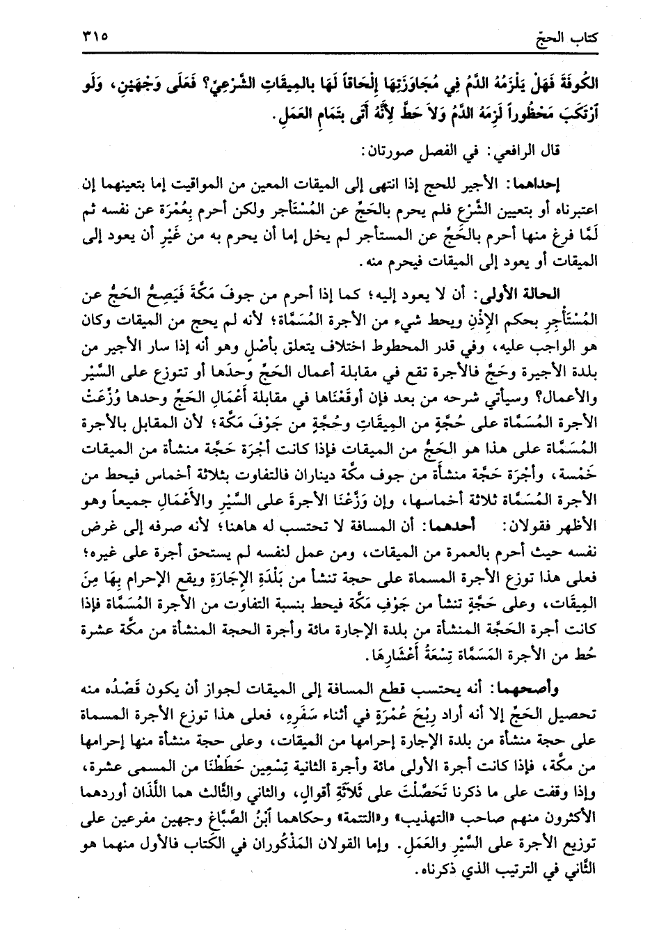وأصحهما: أنه يحتسب قطع المسافة إلى الميقات لجواز أن يكون قَصْدُه منه تحصيل الحَجِّ إلا أنه أراد رِبْحَ عُمْرَةٍ في أثناء سَفَرِهِ، فعلى هذا توزع الأجرة المسماة على حجة منشأة من بلدة الإجارة إحرامها من الميقات، وعلى حجة منشأة منها إحرامها من مكَّة، فإذا كانت أجرة الأولى مائة وأجرة الثانية تِسْعِين حَطَطْنَا من المسمى عشرة، وإذا وقفت على ما ذكرنا تَحَصَّلْتَ على ثَلاثَةِ أقوالٍ، والثاني والثَّالث هما اللَّذَان أوردهما الأكثرون منهم صاحب "التهذيب" و"التتمة" وحكاهما ابْنُ الصَّبَّاغِ وجهين مفرعين على توزيع الأجرة على السَّيْرِ والعَمَلِ. وإما القولان المَذْكُوران في الكتاب فالأول منهما هو الثَّاني في الترتيب الذي ذكرناه.
