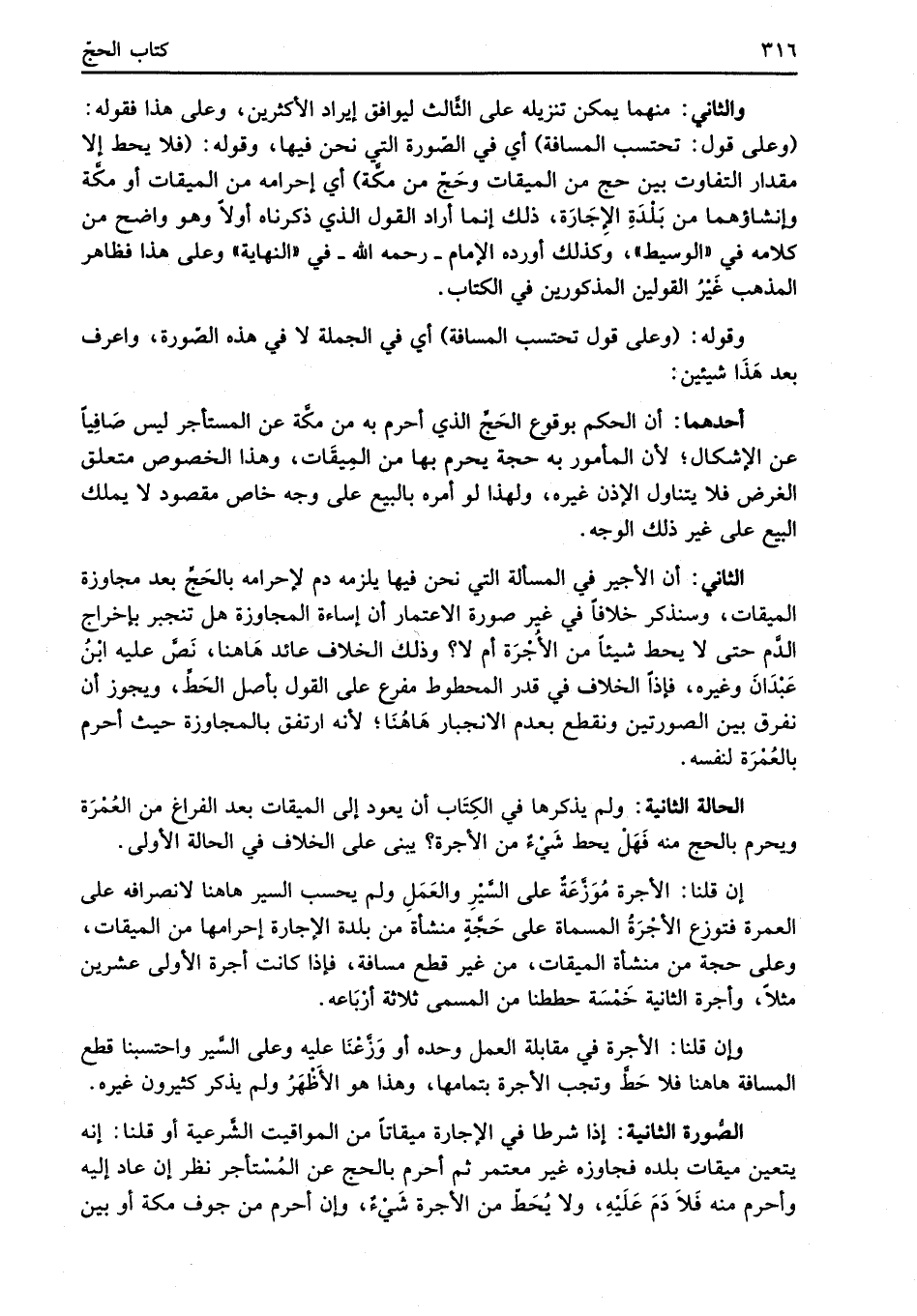 والثاني: منهما يمكن تنزيله على الثَّالث ليوافق إيراد الأكثرين، وعلى هذا فقوله: (وعلى قول: تحتسب المسافة) أي في الصّورة التي نحن فيها، وقوله: (فلا يحط إلا مقدار التفاوت بين حج من الميقات وحَجّ من مكَّة) أي إحرامه من الميقات أو مكَّة وإنشاؤهما من بَلْدَةِ الإِجَارَة، ذلك إنما أراد القول الذي ذكرناه أولاً وهو واضح من كلامه في "الوسيط"، وكذلك أورده الإمام -رحمه الله- في "النهاية" وعلى هذا فظاهر المذهب غَيْرُ القولين المذكورين في الكتاب.