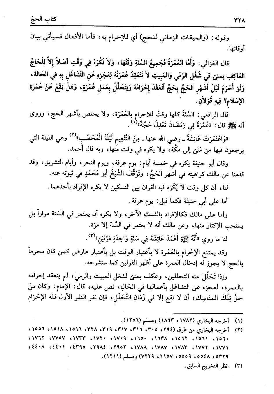 قال الغزالي: وَأَمَّا العُمْرَةُ فَجَمِيعُ السَّنَةِ وَقْتُهَا، وَلاَ تُكْرَهُ فِي وَقْتٍ أصْلاً إِلاَّ لِلحَاجِّ العَاكفِ بمنىً في شُغُل الرَّمْي وَالمَبِيتِ لاَ تَنْعَقِدُ عُمْرَتُهُ لِعَجْزِهِ عَنِ التَّشَاغُلِ بِهِ في الحَالة، وَلَوْ أَحْرَمَ قَبْلَ أَشْهُرِ الحَجِّ بِحَجِّ انْعَقَدَ إِحْرَامُهُ وَيَتَحَلَّلُ بِعَمَلِ عُمْرَةٍ، وَهَلْ يَقَعُ عَنْ عُمْرَةِ الإِسْلامِ؟ فِيهِ قَوْلاَنِ.
