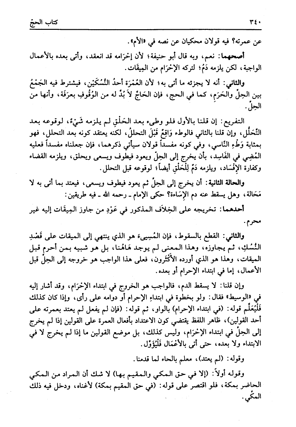 وقوله أولاً: (إلا في حق المكي والمقيم بها) لا شك أن المراد من المكي الحاضر بمكة، فلو اقتصر على قوله: (في حق المقيم بمكة) لأغناه، ودخل فيه ذلك المكِّي.