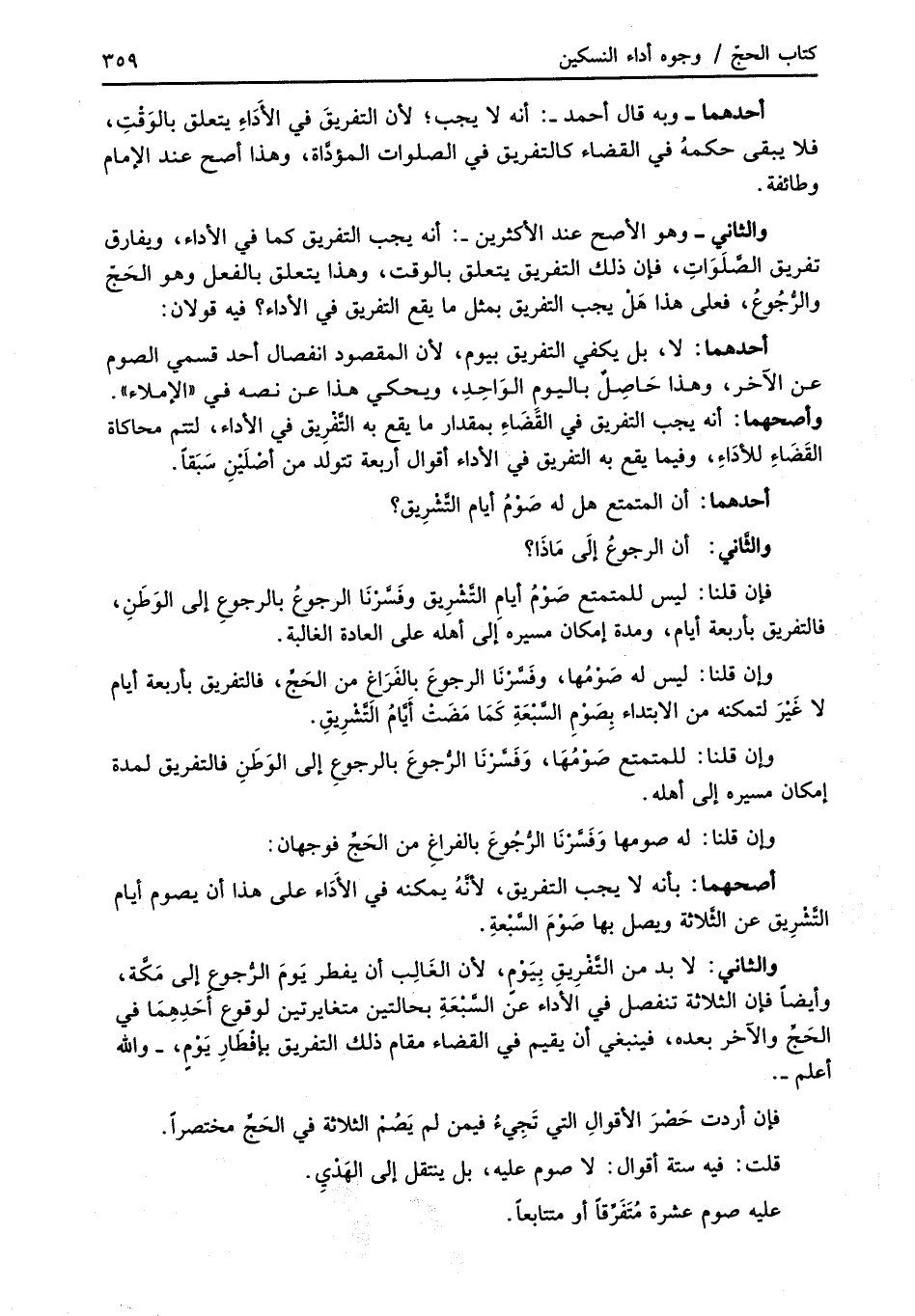 والثاني -وهو الأصح عند الأكثرين-: أنه يجب التفريق كما في الأداء، ويفارق تفريق الصَّلَوَاتِ، فإن ذلك التفريق يتعلق بالوقت، وهذا يتعلق بالفعل وهو الحَجِّ والرُّجُوعُ، فعلى هذا هَلْ يجب التفريق بمثل ما يقع التفريق في الأداء؟ فيه قولان: