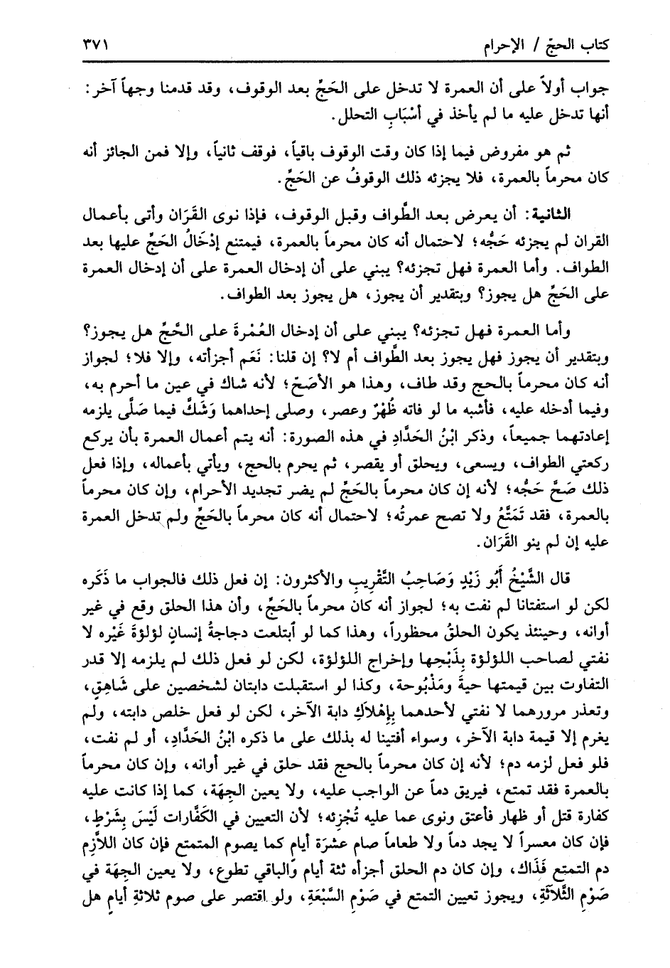 الثانية: أن يعرض بعد الطَّواف وقبل الوقوف، فإذا نوى القَرَان وأتى بأعمال القرآن لم يجزئه حَجُّه؛ لاحتمال أنه كان محرمًا بالعمرة، فيمتنع إدْخَالُ الحَجِّ عليها بعد الطواف. وأما العمرة فهل تجزئه؟ يبني على أن إدخال العمرة على أن إدخال العمرة على الحَجِّ هل يجوز؟ وبتقدير أن يجوز، هل يجوز بعد الطواف.