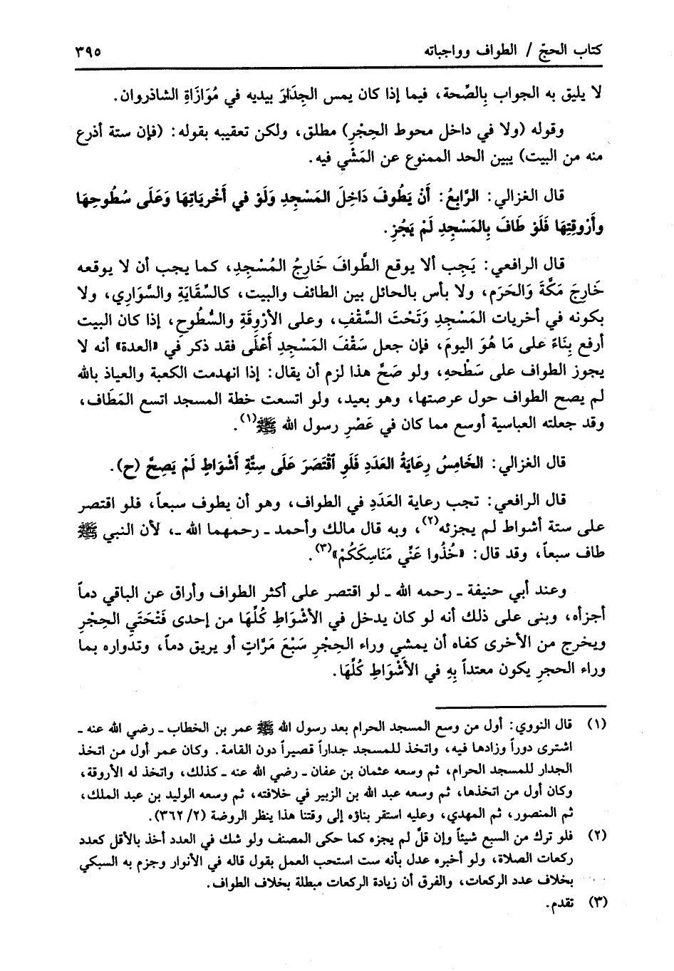 قال الغزالي: الخَامِسُ رِعَايَةُ العَدَدِ فَلَوِ اقْتَصَرَ عَلَى سِتَّةِ أَشْوَاطٍ لَمْ يَصِحَّ (ح).