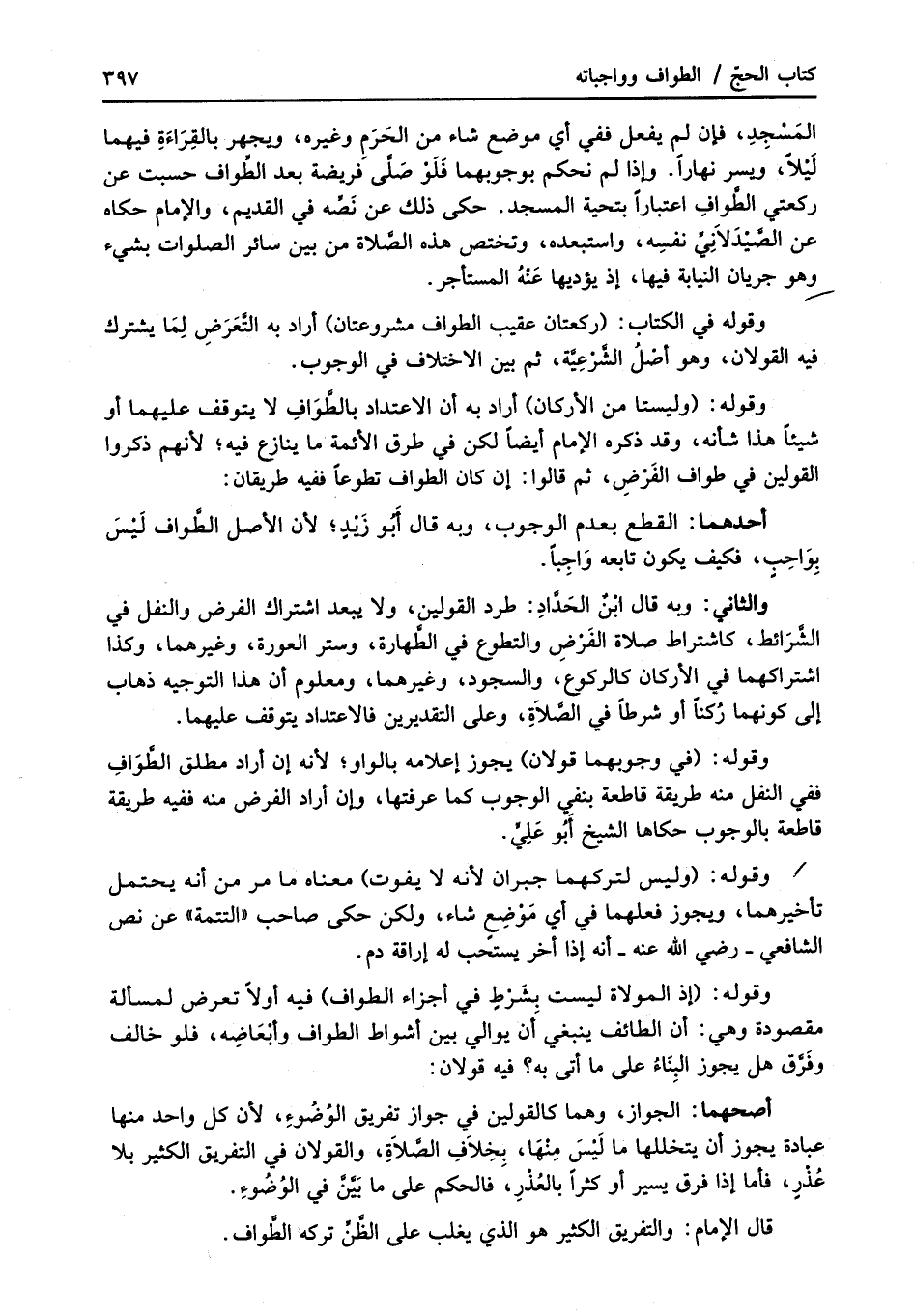 وقوله: (في وجوبهما قولان) يجوز إعلامه بالواو؛ لأنه إن أراد مطلق الطَّوَافِ ففي النفل منه طريقة قاطعة بنفي الوجوب كما عرفتها، وإن أراد الفرض منه ففيه طريقة قاطعة بالوجوب حكاها الشيخ أَبُو عَلِيّ.