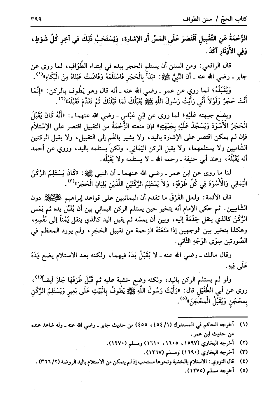 (¬4) قال النووي: الاستلام بالخشبة ونحوها مستحب إذ لم يتمكن من الاستلام باليد الروضة (2/ 366).