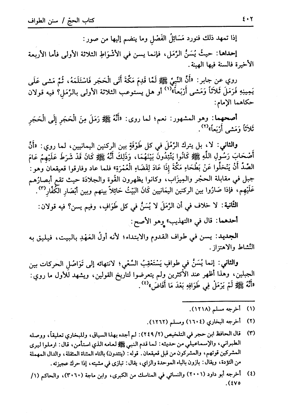 والثاني: إنما يُسَنُّ في طوافٍ يَسْتَعْقِبُ السَّعْي؛ لانتهائه إلى تَوَاصُلِ الحركات بين الجبلين، وهذا أظهر عند الأكْثرين ولم يتعرضوا لتاريخ القولين، ويشهد للأول ما روي: "أَنَّهُ -صلى الله عليه وسلم- لَمْ يَرْمَلْ فِي طَوَافِهِ بَعْدَ مَا أَفَاضَ" (¬4).
