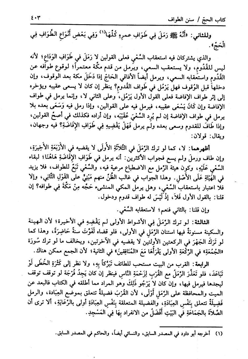 وللثاني: "أَنَّهُ -صلى الله عليه وسلم- رَمَلَ فِي طَوَافِ عمرِهِ كُلَّهَا (¬1) وَفِي بَعْضِ أَنْوَاعِ الطَّوَافِ فِي الْحَجِّ".