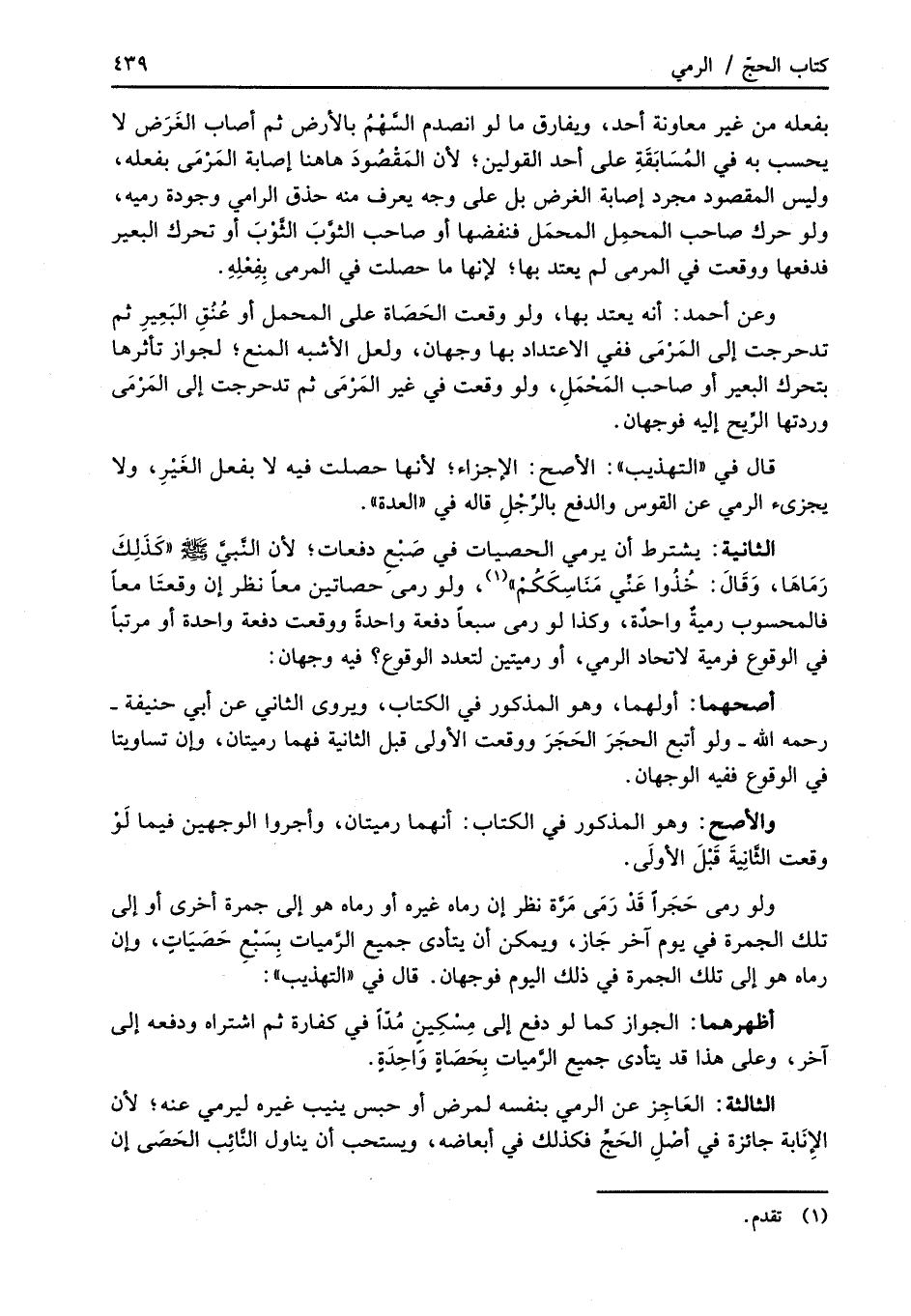 وعن أحمد: أنه يعتد بها، ولو وقعت الحَصَاة على المحمل أو عُنُقِ البَعِيرِ ثم تدحرجت إلى المَرْمَى ففي الاعتداد بها وجهان، ولعل الأشبه المنع؛ لجواز تأثرها بتحرك البعير أو صاحب المَحْمَل، ولو وقعت في غير المَرْمَى ثم تدحرجت إلى المَرْمَى وردتها الرِّيح إليه فوجهان.