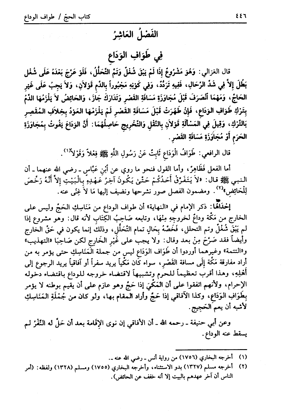 الفَصْلُ العَاشِرُ فِي طَوَافِ الوَدَاعِ