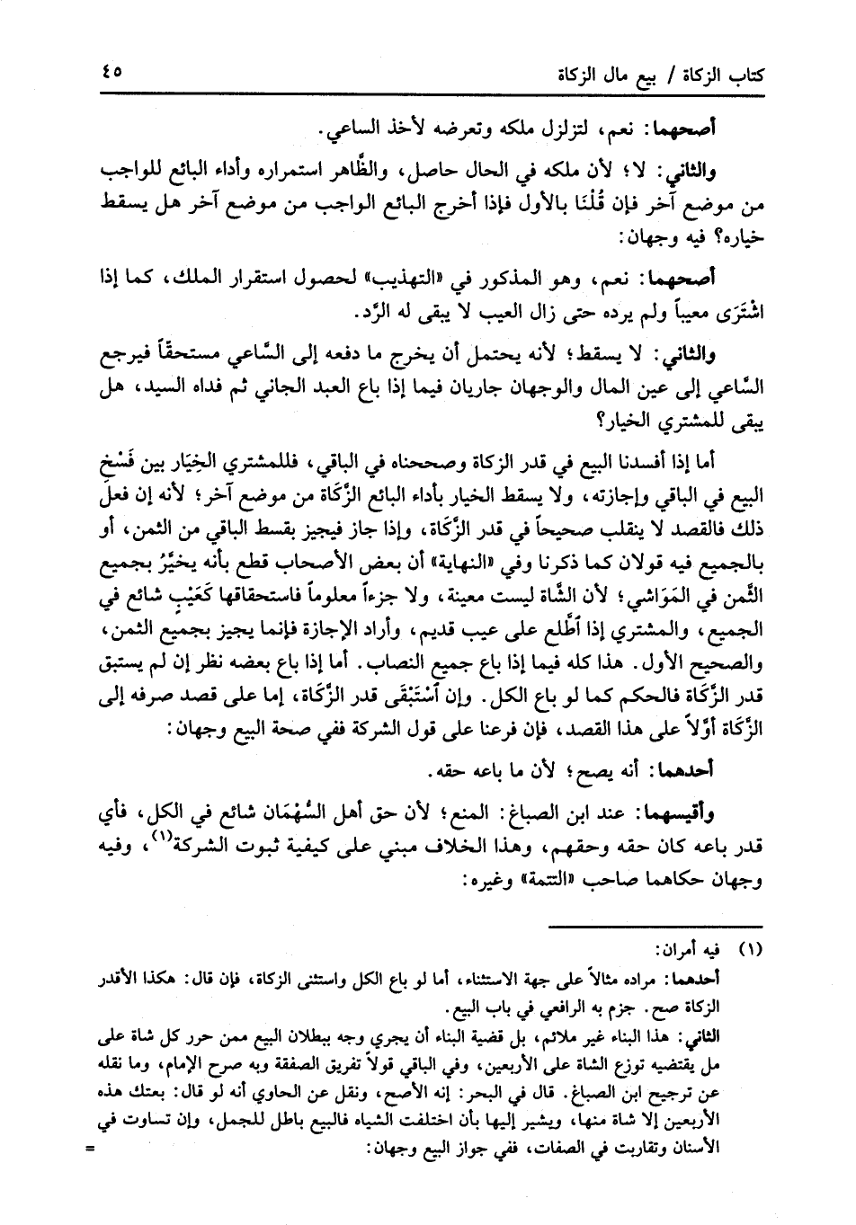 أحدهما: مراده مثالاً على جهة الاستثناء، أما لو باع الكل واستثنى الزكاة، فإن قال: هكذا الأقدر الزكاة صح. جزم به الرافعي في باب البيع.