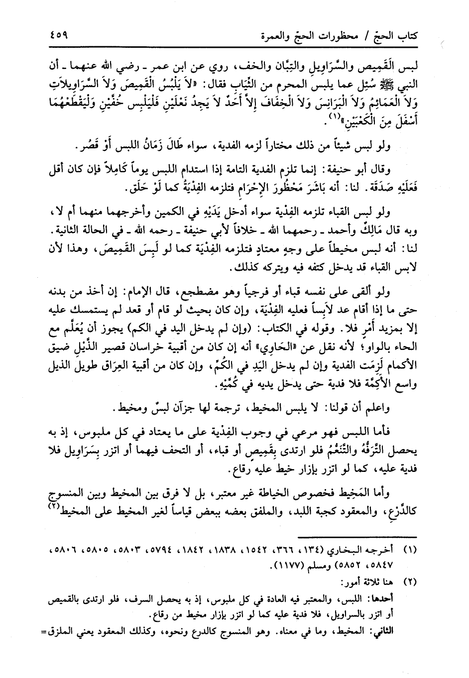 واعلم أن قولنا: لا يلبس المخيط، ترجمة لها جزآن لبسٌ ومخيط.