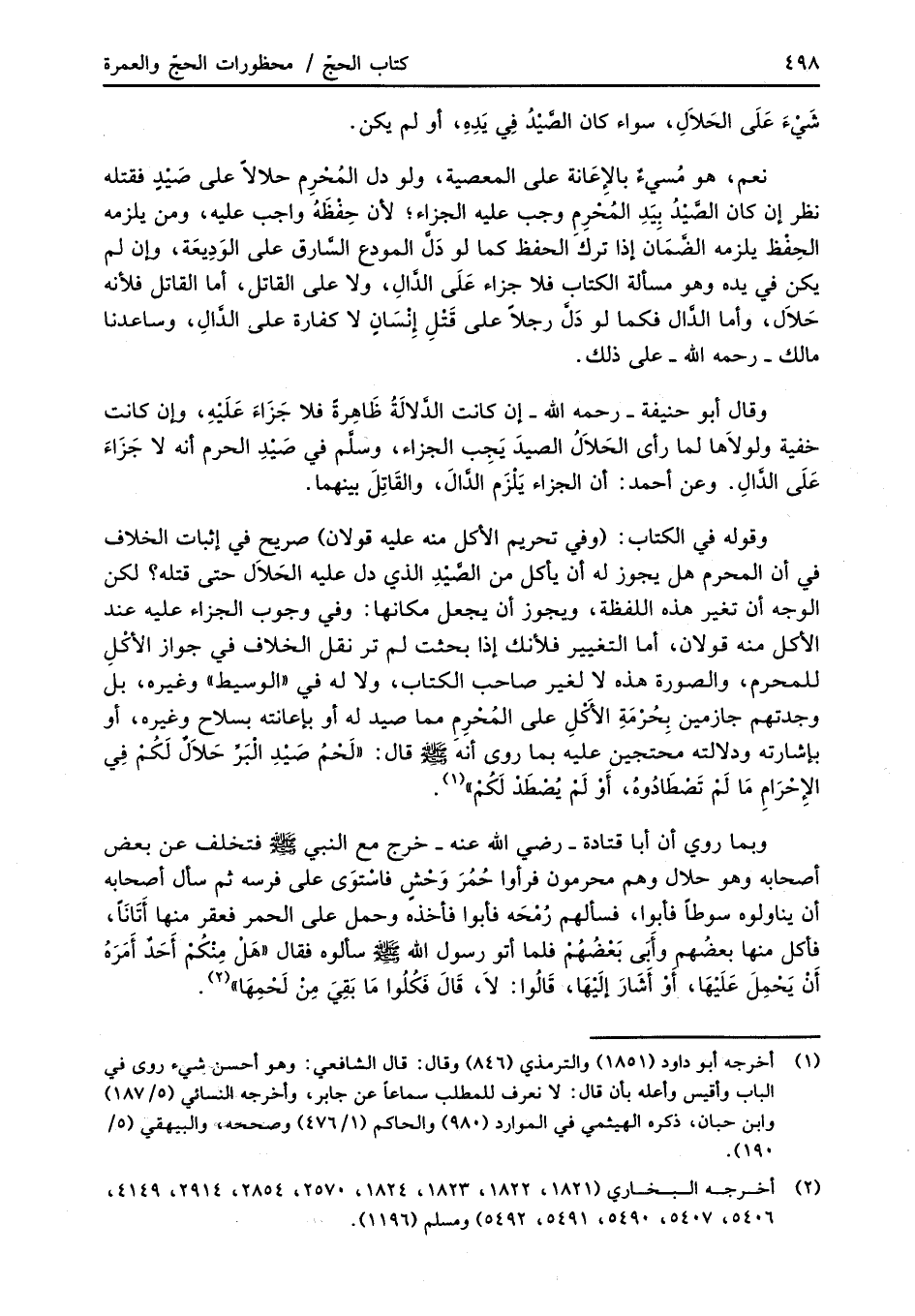 وبما روي أن أبا قتادة -رضي الله عنه- خرج مع النبي -صلى الله عليه وسلم- فتخلف عن بعض أصحابه وهو حلال وهم محرمون فرأوا حُمُرَ وَحْشٍ فاسْتوَى على فرسه ثم سأل أصحابه أن يناولوه سوطاً فأبوا، فسألهم رُمْحَه فابوا فأخذه وحمل على الحمر فعقر منها أَتَانَاً، فأكل منها بعضُهمِ وأَبَى بَعْضُهُم فلما أتو رسول الله -صلى الله عليه وسلم- سألوه فقال "هَلْ مِنْكُمْ أَحَدٌ أَمَرَهُ أَنْ يَحْمِلَ عَلَيْهَا، أَوْ أَشَارَ إِلَيْهَا، قَالُوا: لاَ، قَالَ فَكُلُوا مَا بَقِيَ مِنْ لَحْمِهَا" (¬2).