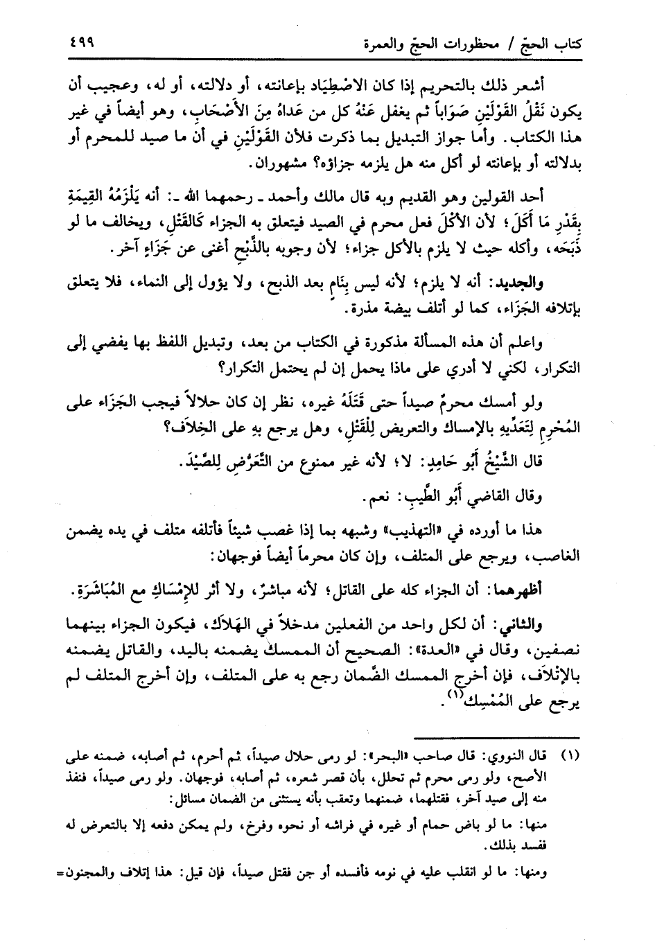 أشعر ذلك بالتحريم إذا كان الاصْطِيَاد بإعانته، أو دلالته، أو له، وعجيب أن يكون نَقْلُ القَوْلَيْنِ صَوَاباً ثم يغفل عَنْهُ كل من عَداهُ مِنَ الأَصْحَابِ، وهو أيضاً في غير هذا الكتاب. وأما جواز التبديل بما ذكرت فلأن القَوْلَيْنِ في أنَ ما صيد للمحرم أو بدلالته أو بإعانته لو كل منه هل يلزمه جزاؤه؟ مشهوران.