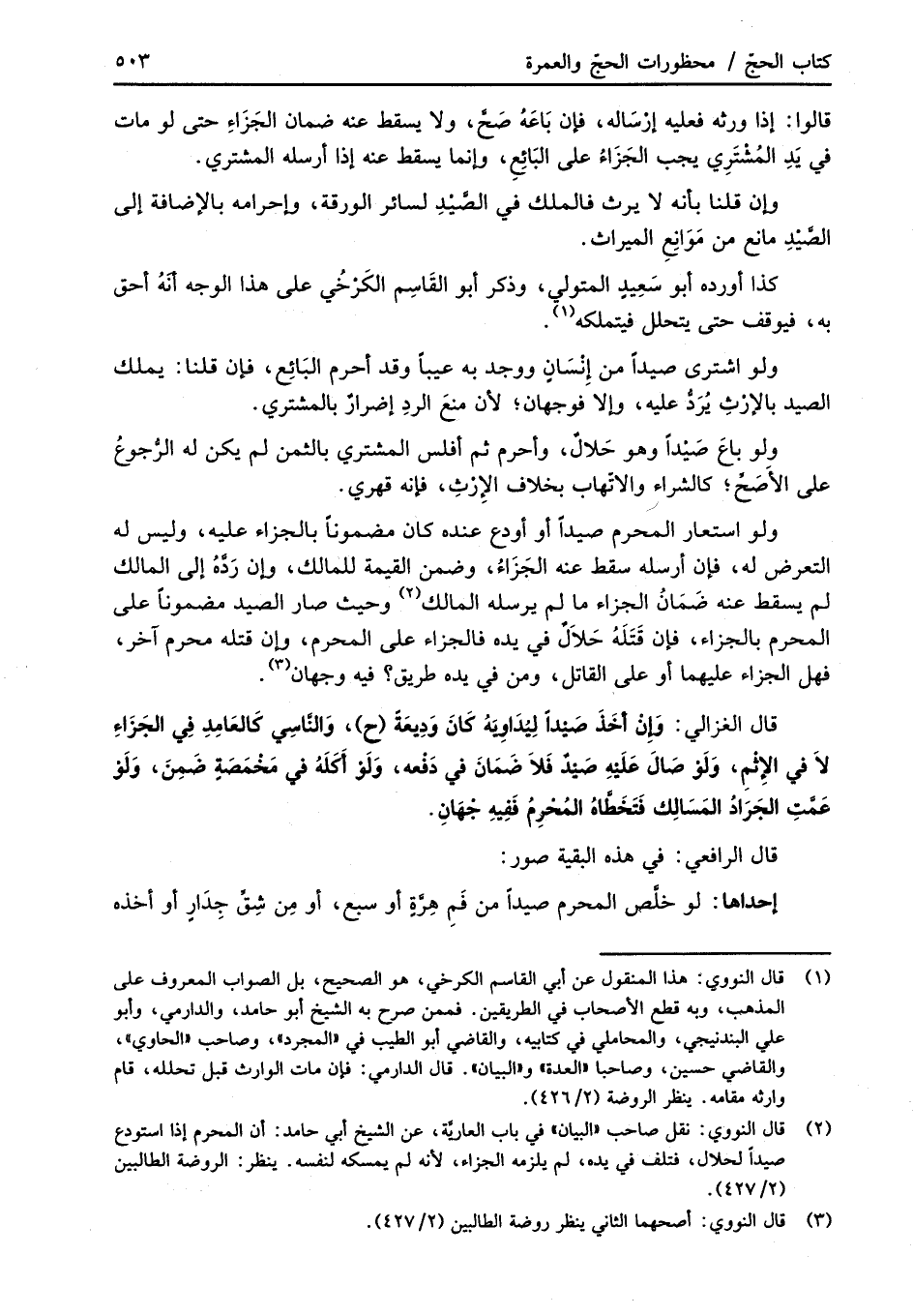 (¬2) قال النووي: نقل صاحب "البيان" في باب العاريَّة، عن الشيخ أبي حامد: أن المحرم إذا استودع صيداً لحلال، فتلف في يده، لم يلزمه الجزاء، لأنه لم يمسكه لنفسه. ينظر: الروضة الطالبين (2/ 427).