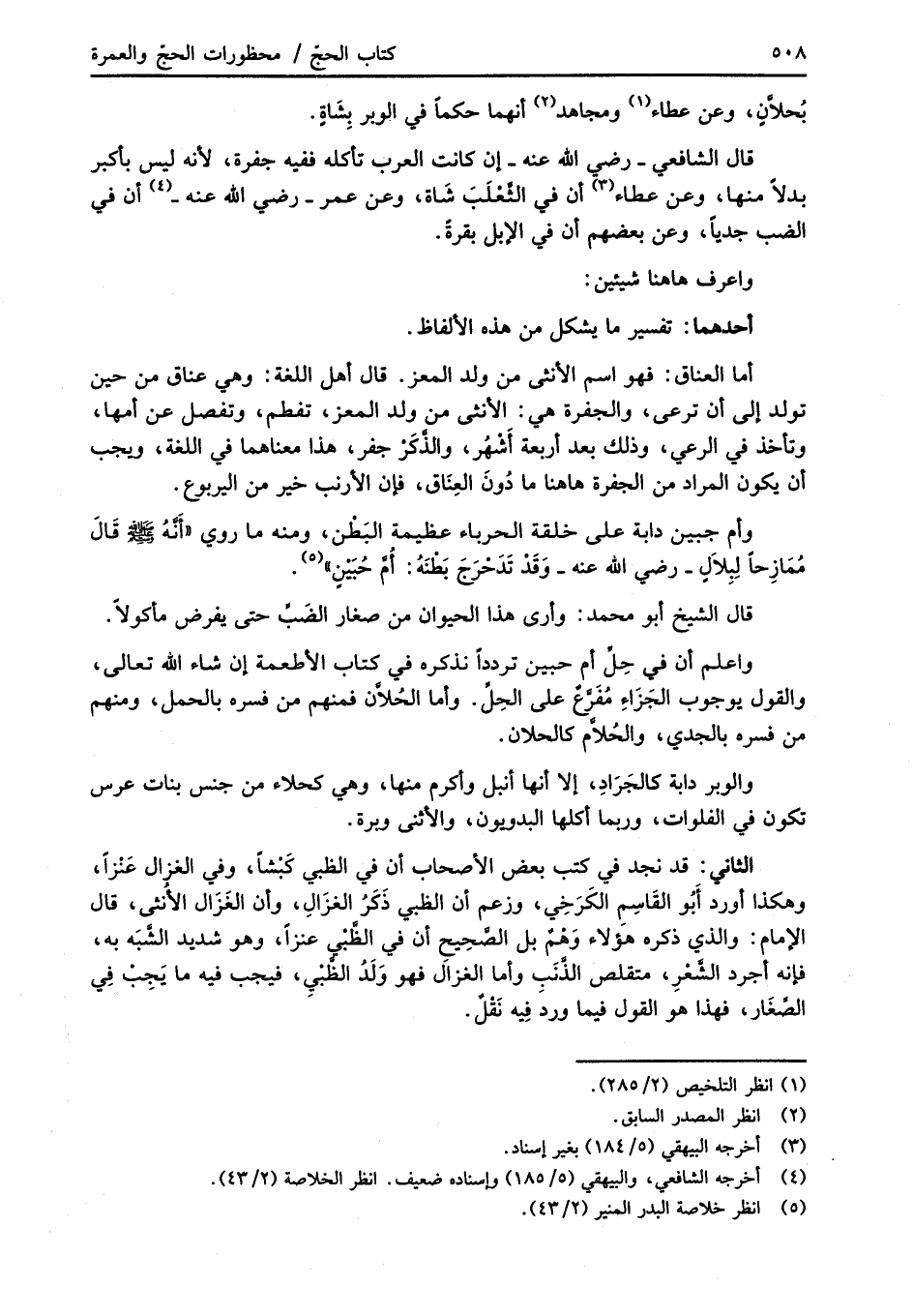 (¬4) أخرجه الشافعي، والبيهقي (5/ 185) وإسناده ضعيف. انظر الخلاصة (2/ 43).