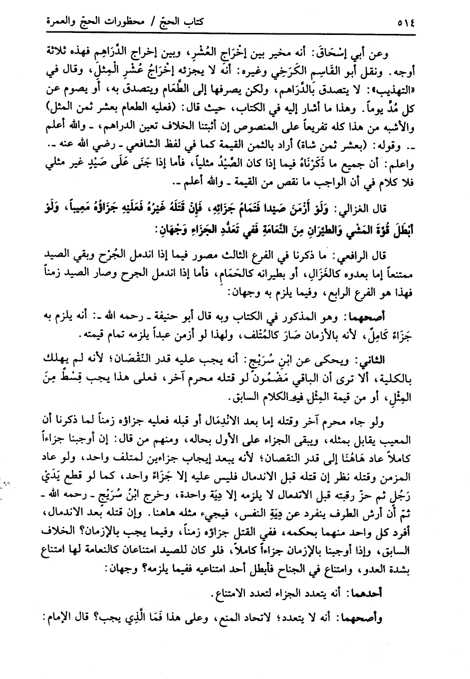 قال الغزالي: وَلَوْ أَزْمَنَ صَيْدا فَتَمَامُ جَزَائِهِ، فَإِنْ قَتَلَهُ غَيْرُهُ فَعَلَيْهِ جَزَاؤُهُ مَعِيباً، وَلَوْ أبْطَلَ قُوَّةَ المَشْي وَالطيَّرَانِ مِنَ النَّعَامَةِ فَفي تَعَدُّدِ الجَزَاءِ وَجْهَانِ: