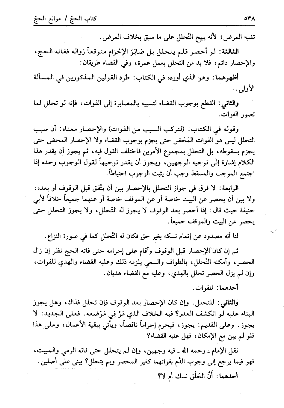 الرابعة: لا فرق في جواز التحلل بالإحصار بين أن يتَّفق قبل الوقوف أو بعده، ولا بين أن يحصر عن البيت خاصة أو عن الموقف خاصة أو عنهما جميعاً خلافاً لأبي حنيفة حيث قال: إذا أحصر بعد الوقوف لا يجوز له التّحلل، ولا يجوز التحلل حتى يحصر عن البيت والموقف جميعاً.
