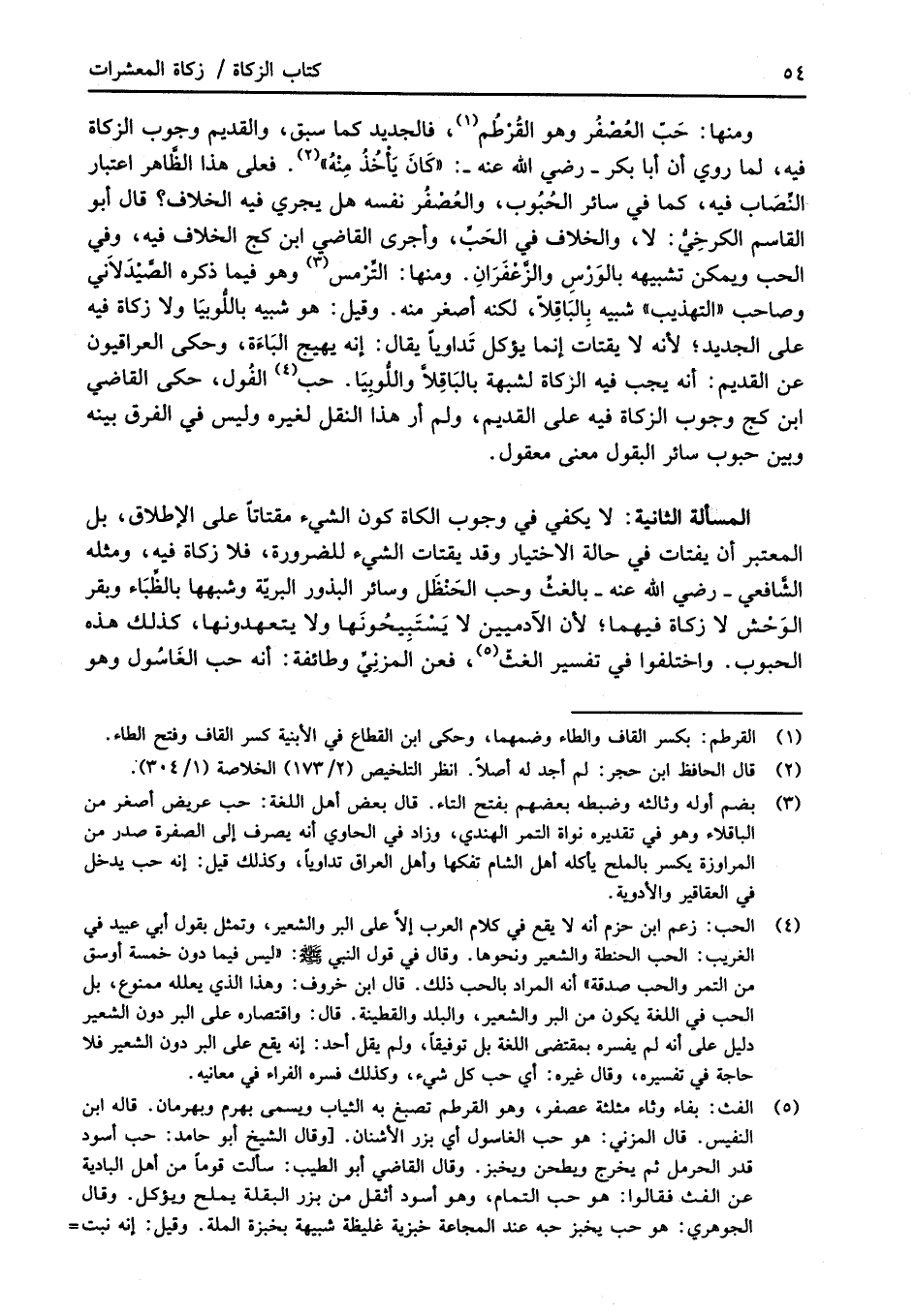 المسألة الثانية: لا يكفي في وجوب الكاة كون الشيء مقتاتاً على الإطلاق، بل المعتبر أن يفتات في حالة الاختيار وقد يقتات الشيء للضرورة، فلا زكاة فيه، ومثله الشَّافعي -رضي الله عنه- بالغثِّ وحب الحَنْظَل وسائر البذور البريّة وشبهها بالظِّبَاء وبقر الوَحْش لا زكاة فيهما؛ لأن الآدميين لا يَسْتَبِيحُونَها ولا يتعهدونها، كذلك هذه الحبوب. واختلفوا في تفسير الغثّ (¬5)، فعن المزنِيِّ وطائفة: أنه حب الغَاسُول وهو