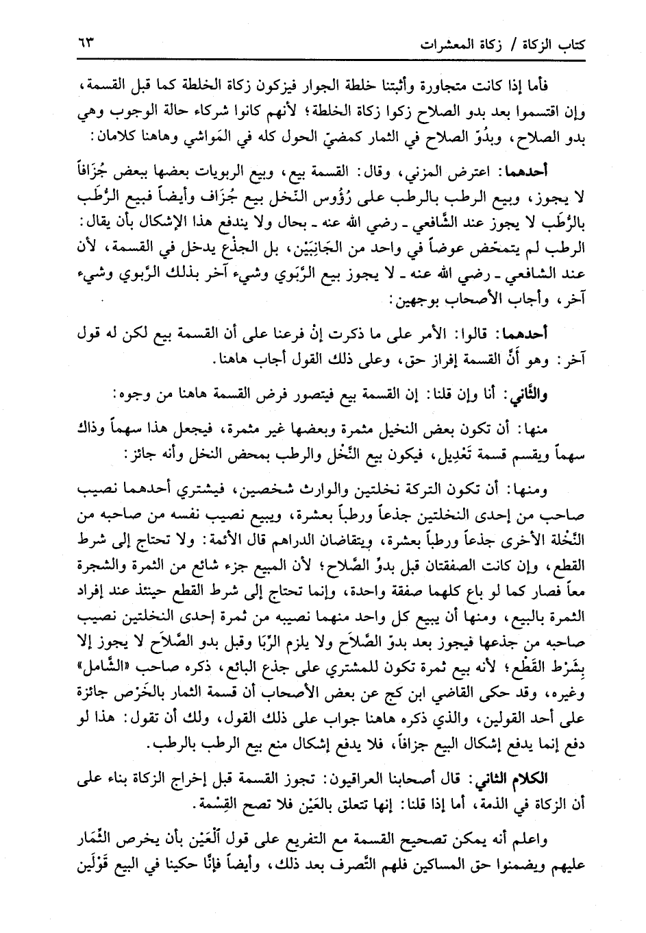 الكلام الثاني: قال أصحابنا العراقيون: تجوز القسمة قبل إخراج الزكاة بناء على أن الزكاة في الذمة، أما إذا قلنا: إنها تتعلق بالعَيْن فلا تصح القِسْمة.