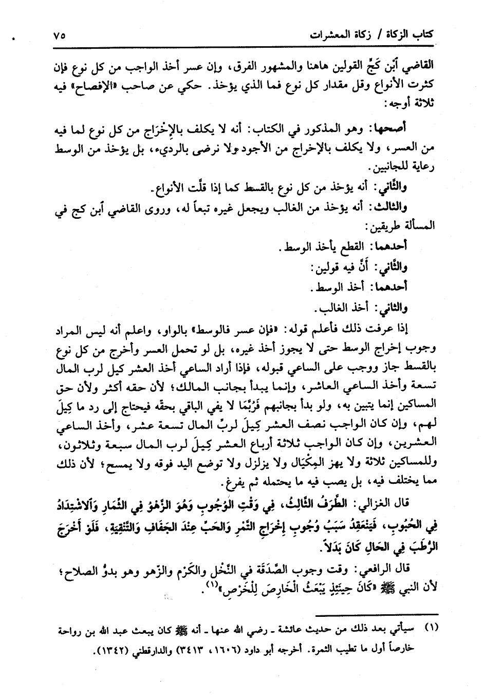 (¬1) سيأتي بعد ذلك من حديث عائشة -رضي الله عنها- أنه -صلى الله عليه وسلم- كان يبعث عبد الله بن رواحة خارصاً أول ما تطيب الثمرة. أخرجه أبو داود (1606، 3413) والدارقطنى (1342).