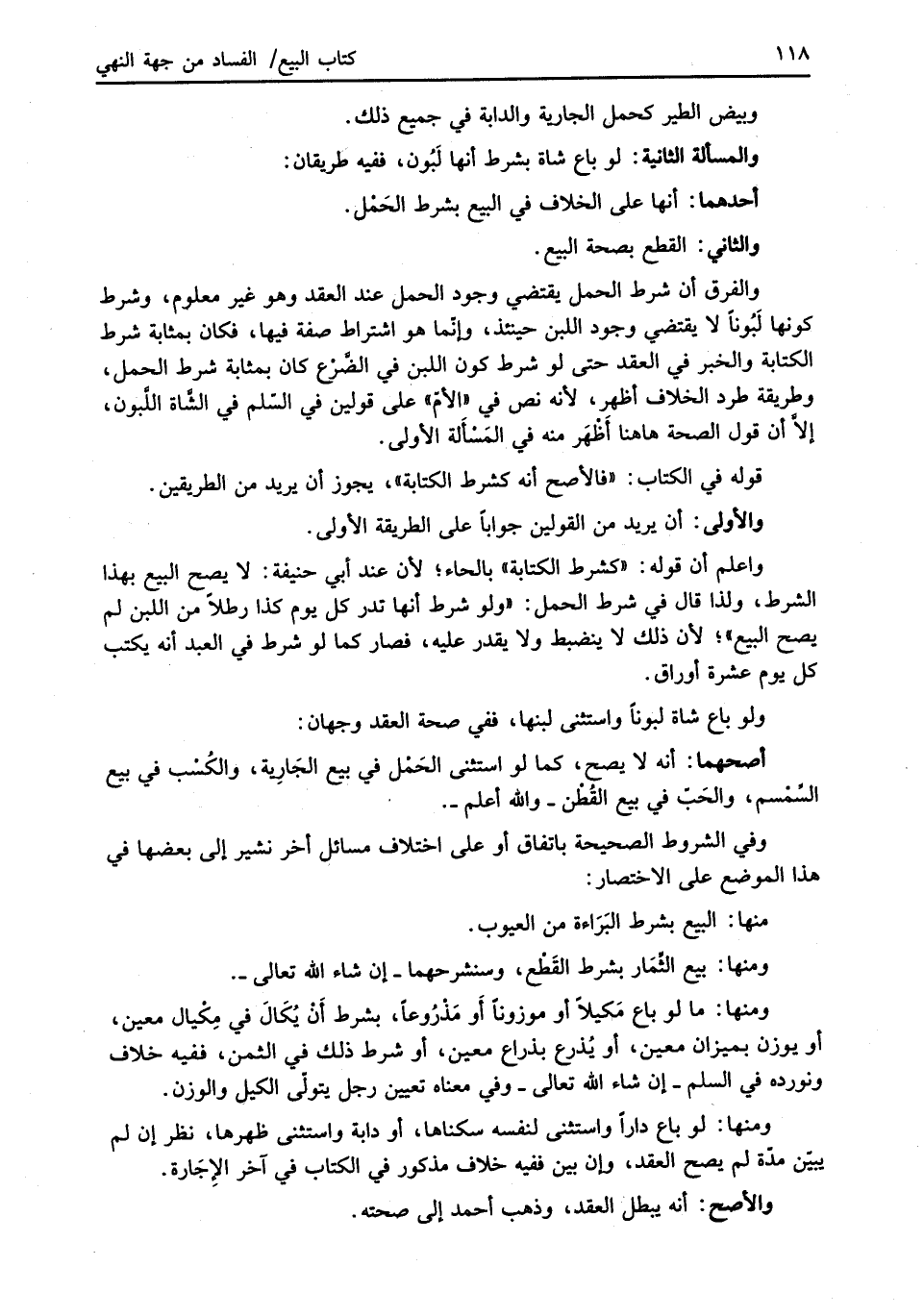 وفي الشروط الصحيحة باتفاق أو على اختلاف مسائل أخر نشير إلى بعضها في هذا الموضع على الاختصار: