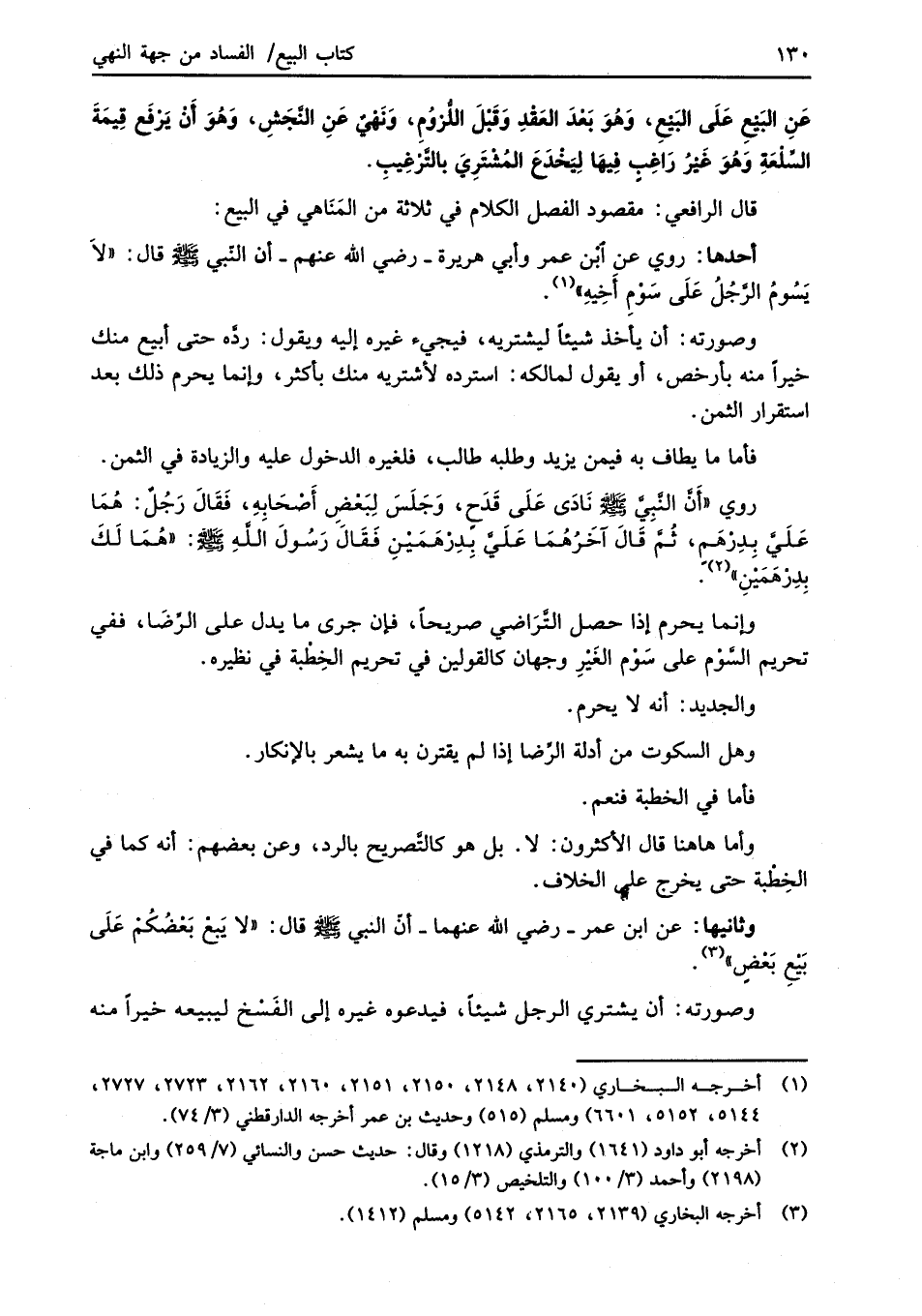 وثانيها: عن ابن عمر -رضي الله عنهما- أنَّ النبي -صلى الله عليه وسلم- قال: "لا يَبعْ بَعْضُكُمْ عَلَى بَيْعِ بَعْضٍ" (¬3).