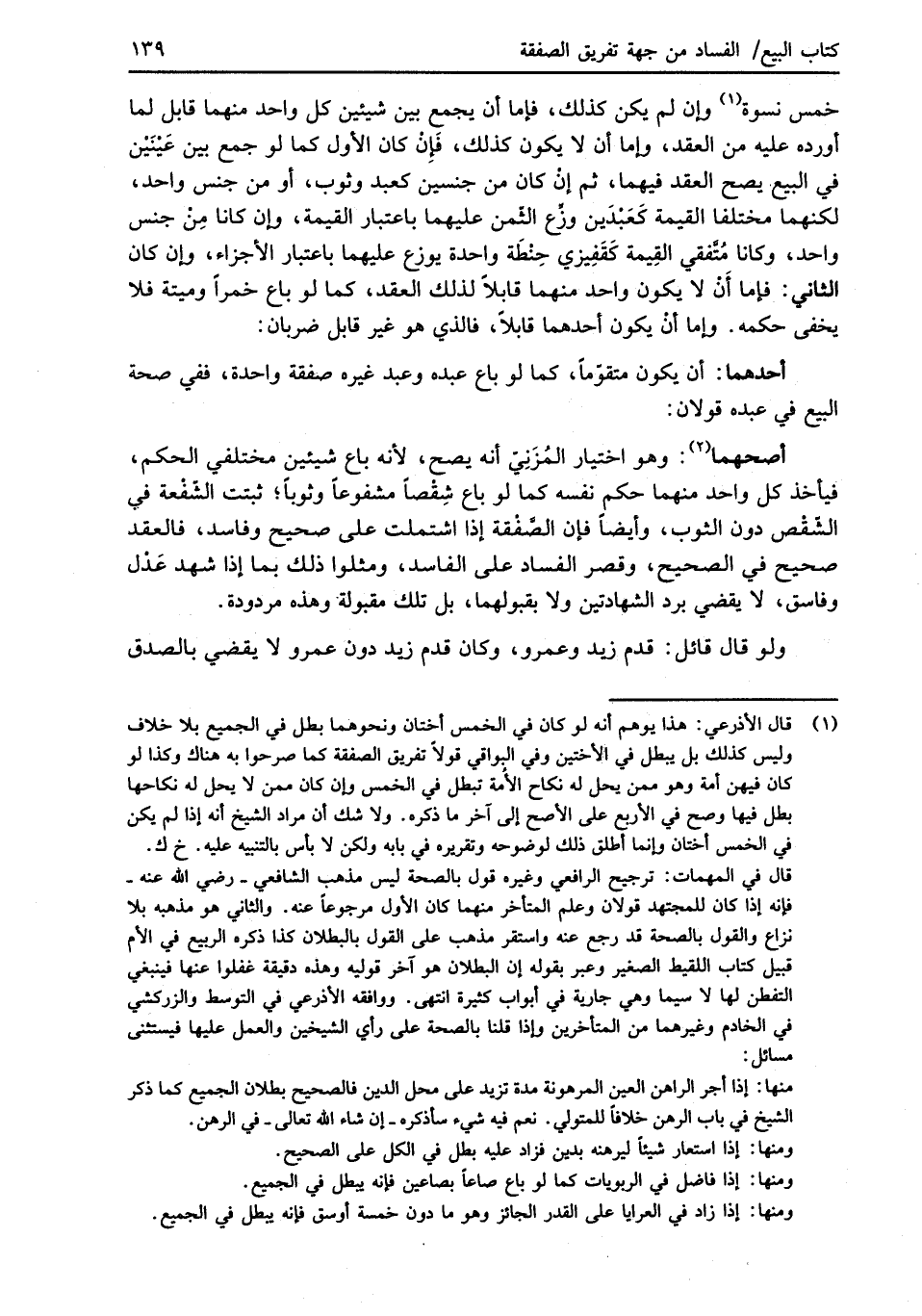 خمس نسوة (¬1) وإن لم يكن كذلك، فإما أن يجمع بين شيئين كل واحد منهما قابل لما أورده عليه من العقد، وإما أن لا يكون كذلك، فَإِنْ كان الأول كما لو جمع بين عَيْنَيْن في البيع يصح العقد فيهما، ثم إنْ كان من جنسين كعبد وثوب، أو من جنس واحد، لكنهما مختلفا القيمة كَعَبْدَين وزِّع الثّمن عليهما باعتبار القيمة، وإن كانا مِنْ جنس واحد، وكانا مُتَّفقي القِيمة كَقَفِيزي حِنْطَة واحدة يوزع عليهما باعتبار الأجزاء، وإن كان الثاني: فإما أَنْ لا يكون واحد منهما قابلاً لذلك العقد، كما لو باع خمراً وميتة فلا يخفى حكمه. وإما أنْ يكون أحدهما قابلاً، فالذي هو غير قابل ضربان: