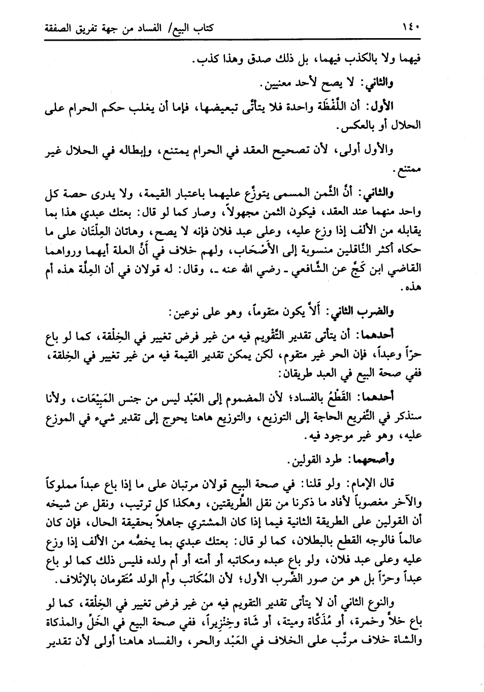 والثاني: أنَّ الثَّمن المسمى يتوزَّع عليهما باعتبار القيمة، ولا يدرى حصة كل واحد منهما عند العقد، فيكون الثمن مجهولاً، وصار كما لو قال: بعتك عبدي هذا بما يقابله من الألف إذا وزع عليه، وعلى عبد فلان فإنه لا يصح، وهاتان العِلّتَان على ما حكاه أكثر النَّاقلين منسوبة إلى الأَصْحَاب، ولهم خلاف في أَنَّ العلة أيهما ورواهما القاضي ابن كَجّ عن الشَّافعي -رضي الله عنه-، وقال: له قولان في أن العِلَّة هذه أم هذه.