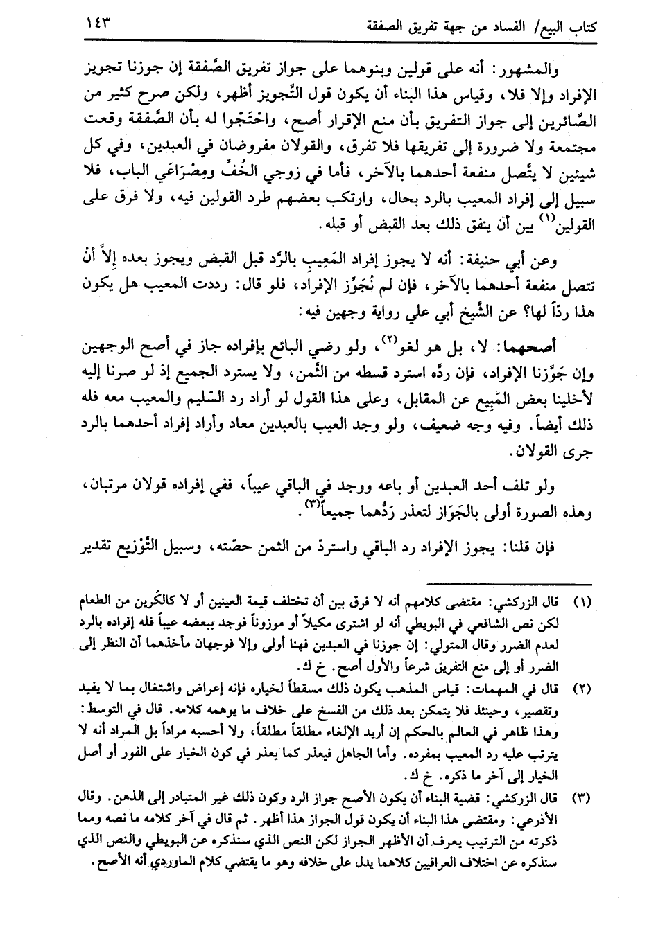 (¬1) قال الزركشي: مقتضى كلامهم أنه لا فرق بين أن تختلف قيمة العينين أو لا كالكُرين من الطعام لكن نص الشافعي في البويطي أنه لو اشترى مكيلاً أو موزوناً فوجد ببعضه عيباً فله إفراده بالرد لعدم الضرر وقال المتولي: إن جورنا في العبدين فهنا أولى وإلا فوجهان مأخذهما أن النظر إلى الضرر أو إلى منع التفريق شرعاً والأول أصح. خ ك.