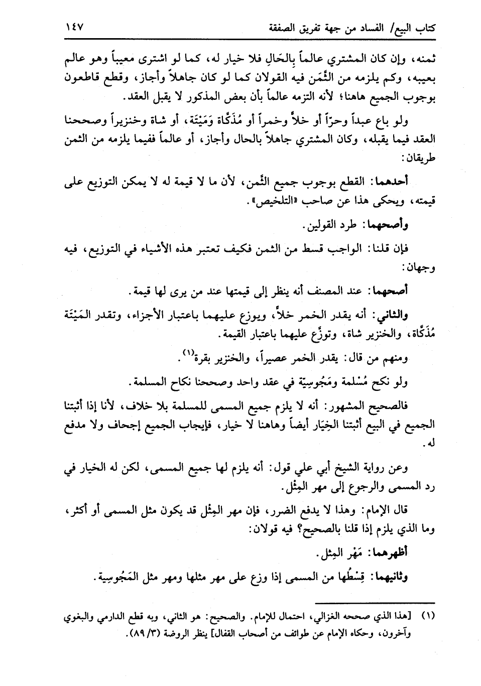 (¬1) [هذا الذي صححه الغزالي، احتمال للإمام. والصحيح: هو الثاني، وبه قطع الدارمي والبغوي وآخرون، وحكاه الإمام عن طوائف من أصحاب القفال] ينظر الروضة (3/ 89).