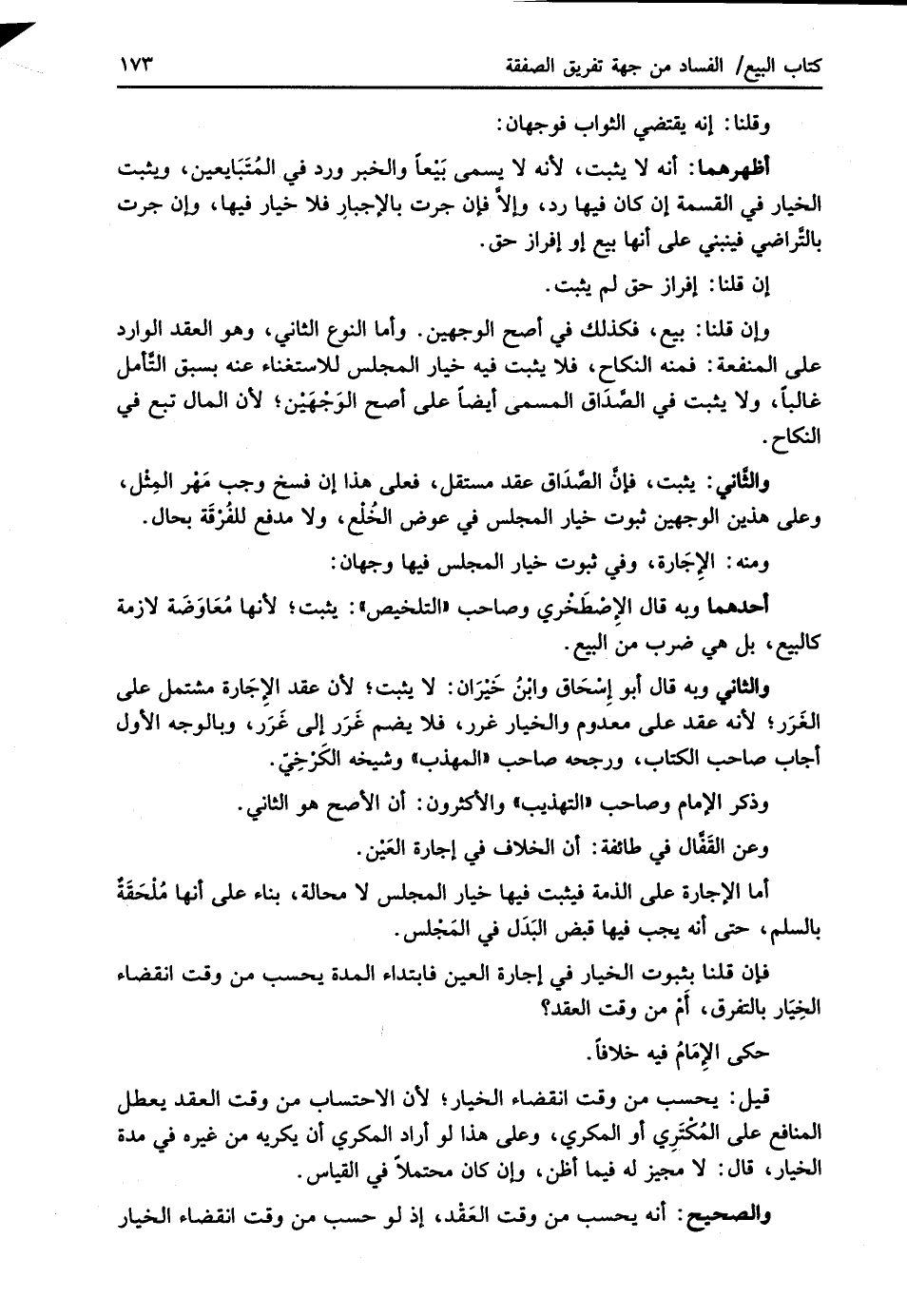 وإن قلنا: بيع، فكذلك في أصح الوجهين. وأما النوع الثاني، وهو العقد الوارد على المنفعة: فمنه النكاح، فلا يثبت فيه خيار المجلس للاستغناء عنه بسبق التَّأمل غالباً، ولا يثبت في الصَّدَاق المسمى أيضاً على أصح الوَجْهَيْن؛ لأن المال تبع في النكاح.