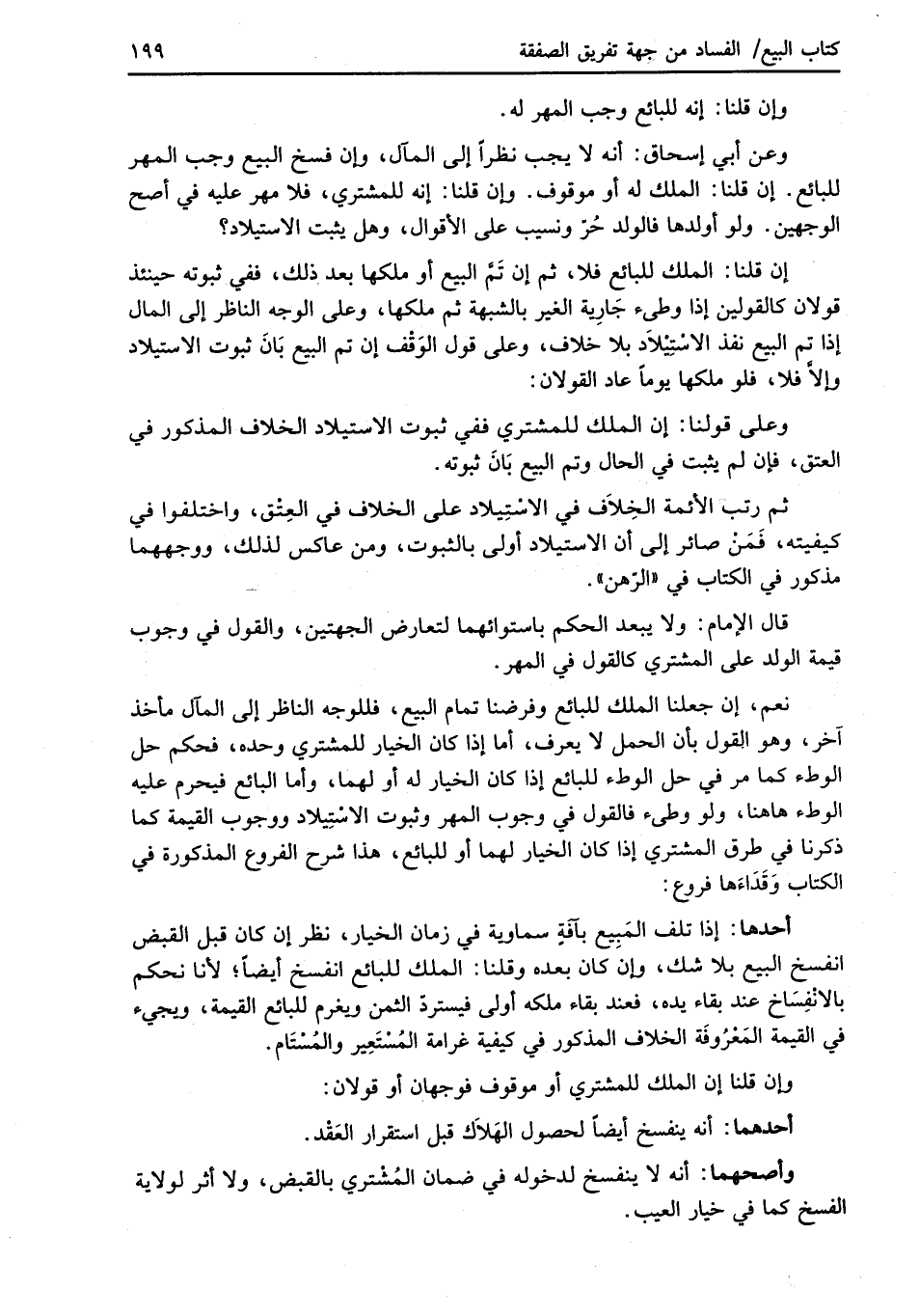 نعم، إن جعلنا الملك للبائع وفرضنا تمام البيع، فللوجه الناظر إلى المآل مأخذ آخر، وهو القول بأن الحمل لا يعرف، أما إذا كان الخيار للمشتري وحده، فحكم حل الوطء كما مر في حل الوطء للبائع إذا كان الخيار له أو لهما، وأما البائع فيحرم عليه الوطء هاهنا، ولو وطئ فالقول في وجوب المهر وثبوت الاسْتِيلاد ووجوب القيمة كما ذكرنا في طرق المشتري إذا كان الخيار لهما أو للبائع، هذا شرح الفروع المذكورة في الكتاب وَقَدَاءَها فروع: