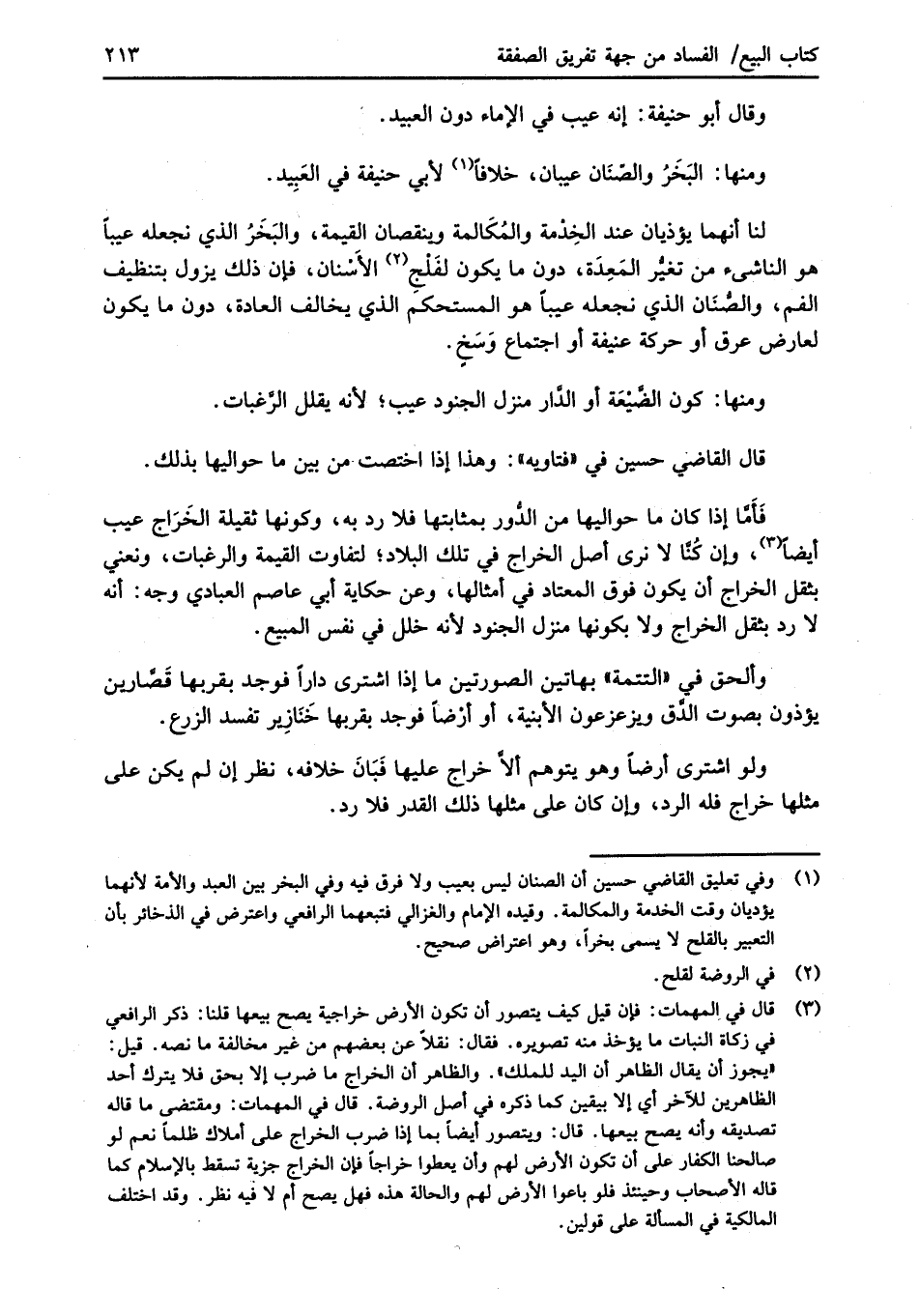 فَأمَّا إذا كان ما حواليها من الدُّور بمثابتها فلا رد به، وكونها ثقيلة الخَرَاج عيب أيضاً (¬3)، وإن كُنَّا لا نرى أصل الخراج في تلك البلاد؛ لتفاوت القيمة والرغبات، ونعني بثقل الخراج أن يكون فوق المعتاد في أمثالها، وعن حكاية أبي عاصم العبادي وجه: أنه لا رد بثقل الخراج ولا بكونها منزل الجنود لأنه خلل في نفس المبيع.