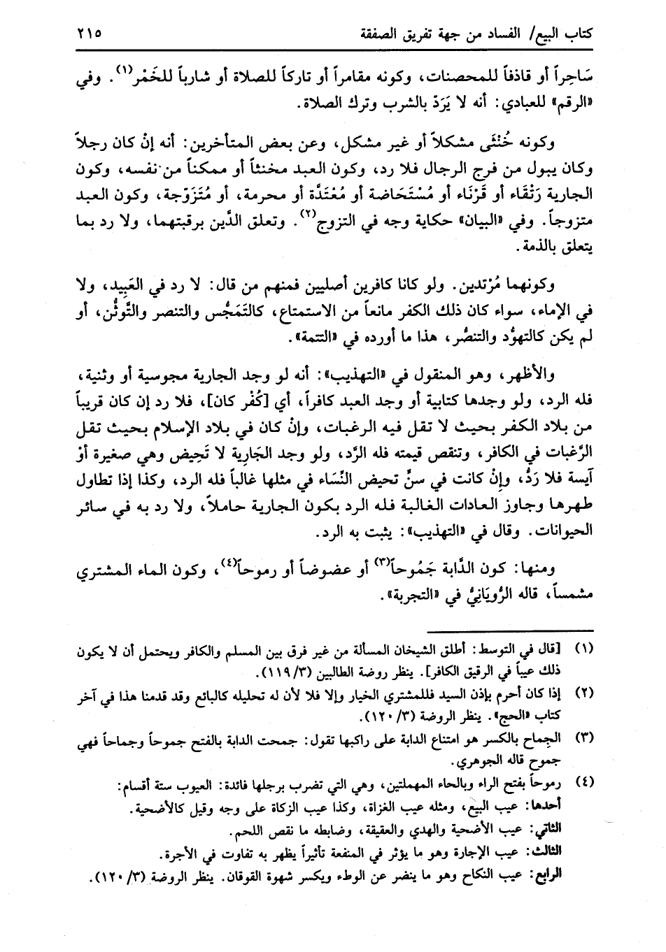 (¬1) [قال في التوسط: أطلق الشيخان المسألة من غير فرق بين المسلم والكافر ويحتمل أن لا يكون ذلك عيباً في الرقيق الكافر]. ينظر روضة الطالبين (3/ 119).