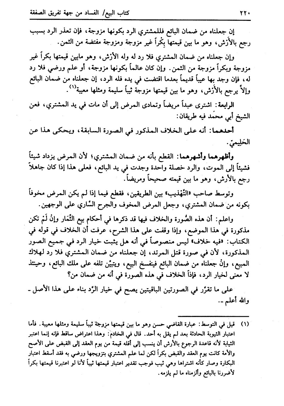 الرابعة: اشترى عبداً مريضاً وتمادى المرض إلى أن مات في يد المشتري، فعن الشيخ أبي محمد فيه طريقان: