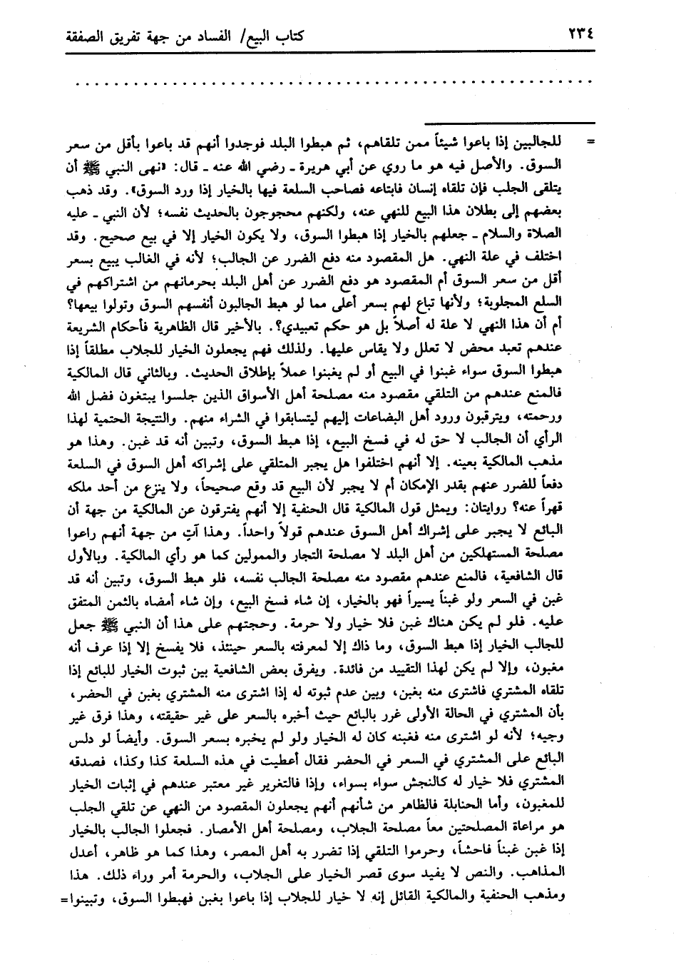 = للجالبين إذا باعوا شيئاً ممن تلقاهم، ثم هبطوا البلد فوجدوا أنهم قد باعوا بأقل من سعر السوق. والأصل فيه هو ما روي عن أبي هريرة -رضي الله عنه- قال: "نهى النبي -صلى الله عليه وسلم- أن يتلقى الجلب فإن تلقاه إنسان فابتاعه فصاحب السلعة فيها بالخيار إذا ورد السوق". وقد ذهب بعضهم إلى بطلان هذا البيع للنهي عنه، ولكنهم محجوجون بالحديث نفسه؛ لأن النبي -عليه الصلاة والسلام- جعلهم بالخيار إذا هبطوا السوق، ولا يكون الخيار إلا في بيع صحيح. وقد اختلف في علة النهي. هل المقصود منه دفع الضرر عن الجالب؛ لأنه في الغالب يبيع بسعر أقل من سعر السوق أم المقصود هو دفع الضرر عن أهل البلد بحرمانهم من اشتراكهم في السلع المجلوبة؛ ولأنها تباع لهم بسعر أعلى مما لو هبط الجالبون أنفسهم السوق وتولوا بيعها؟ أم أن هذا النهي لا علة له أصلاً بل هو حكم تعبيدي؟. بالأخير قال الظاهرية فأحكام الشريعة عندهم تعبد محض لا تعلل ولا يقاس عليها. ولذلك فهم يجعلون الخيار للجلاب مطلقاً إذا هبطوا السوق سواء غبنوا في البيع أو لم يغبنوا عملاً بإطلاق الحديث. وبالثاني قال المالكية فالمنع عندهم من التلقي مقصود منه مصلحة أهل الأسواق الدين جلسوا يبتغون فضل الله ورحمته، ويترقبون ورود أهل البضاعات إليهم ليتسابقوا في الشراء منهم. والنتيجة الحتمية لهذا الرأي أن الجالب لا حق له في فسخ البيع، إذا هبط السوق، وتبين أنه قد غبن. وهذا هو مذهب المالكية بعينه. إلا أنهم اختلفوا هل يجبر المتلقي على إشراكه أهل السوق في السلعة دفعاً للضرر عنهم بقدر الإمكان أم لا يجبر لأن البيع قد وقع صحيحاً، ولا ينزع من أحد ملكه قهراً عنه؟ روايتان: ويمثل قول المالكية قال الحنفية إلا أنهم يفترقون عن المالكية من جهة أن البائع لا يجبر على إشراك أهل السوق عندهم قولاً واحداً. وهذا آتٍ من جهة أنهم راعوا مصلحة المستهلكين من أهل البلد لا مصلحة التجار والممولين كما هو رأي المالكية. وبالأول قال الشافعية، فالمنع عندهم مقصود منه مصلحة الجالب نفسه، فلو هبط السوق، وتبين أنه قد غبن في السعر ولو غبناً يسيراً فهو بالخيار، إن شاء فسخ البيع، وإن شاء أمضاه بالثمن المتفق عليه. فلو لم يكن هناك غبن فلا خيار ولا حرمة. وحجتهم على هذا أن النبي -صلى الله عليه وسلم- جعل للجالب الخيار إذا هبط السوق، وما ذاك إلا لمعرفته بالسعر حينئذ، فلا يفسخ إلا إذا عرف أنه مغبون، وإلا لم يكن لهذا التقييد من فائدة. ويفرق بعض الشافعية بين ثبوت الخيار للبائع إذا تلقاه المشتري فاشترى منه بغبن، وبين عدم ثبوته له إذا اشترى منه المشتري بغبن في الحضر، بأن المشتري في الحالة الأولى غرر بالبائع حيث أخبره بالسعر على غير حقيقته، وهذا فرق غير وجيه؛ لأنه لو اشترى منه فغبنه كان له الخيار ولو لم يخبره بسعر السوق. وأيضاً لو دلس البالع على المشتري في السعر في الحضر فقال أعطيت في هذه السلعة كذا وكذا، فصدقه المشتري فلا خيار له كالنجش سواء بسواء، وإذا فالتغرير غير معتبر عندهم في إثبات الخيار للمغبون، وأما الحنابلة فالظاهر من شأنهم أنهم يجعلون المقصود من النهي عن تلقي الجلب هو مراعاة المصلحتين معاً مصلحة الجلاب، ومصلحة أهل الأمصار. فجعلوا الجالب بالخيار إذا غبن غبناً فاحشاً، وحرموا التلقي إذا تضرر به أهل المصر، وهذا كما هو ظاهر، أعدل المذاهب. والنص لا يفيد سوى قصر الخيار على الجلاب، والحرمة أمر وراء ذلك. هذا ومذهب الحنفية والمالكية القائل إنه لا خيار للجلاب إذا باعوا بغبن فهبطوا السوق، وتبينوا =